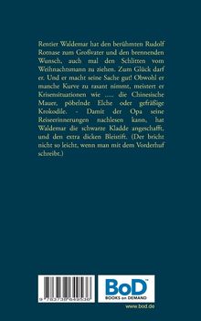 Rentier Waldemar hat den berühmten Rudolf Rotnase zum Großvater und den brennenden Wunsch, auch mal den Schlitten vom Weihnachtsmann zu ziehen. Zum Glück darf er. Und er macht seine Sache gut! Obwohl er manche Kurve zu rasant nimmt, meistert er Krisensituationen wie..... die Chinesische Mauer, pöbelnde Elche oder gefräßige Krokodile. - Damit der Opa seine Reiseerinnerungen nachlesen kann, hat Waldemar die schwarze Kladde angeschafft, und den extra dicken Bleistift. (Der bricht nicht so leicht, wenn man mit dem Vorderhuf schreibt.)