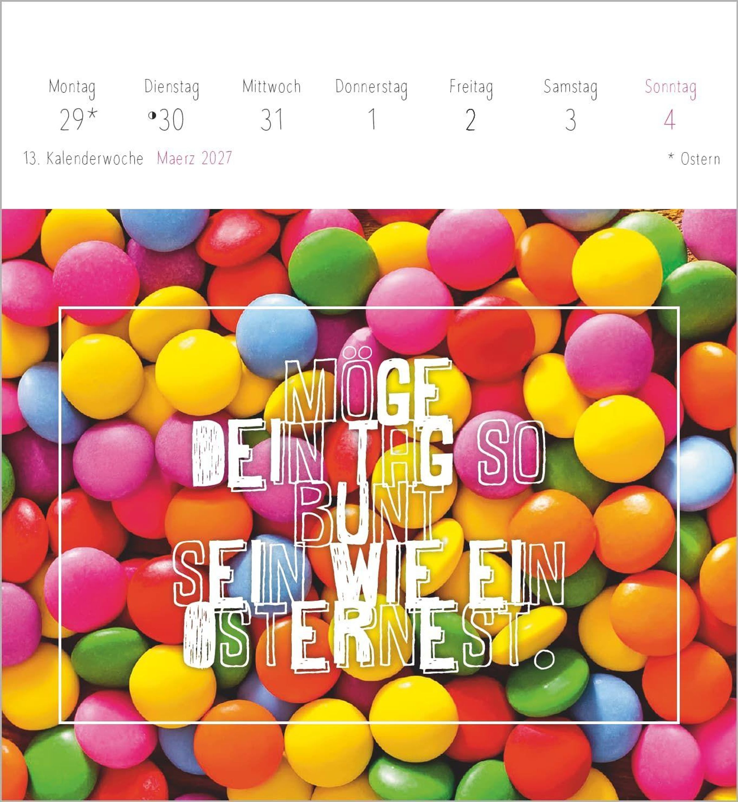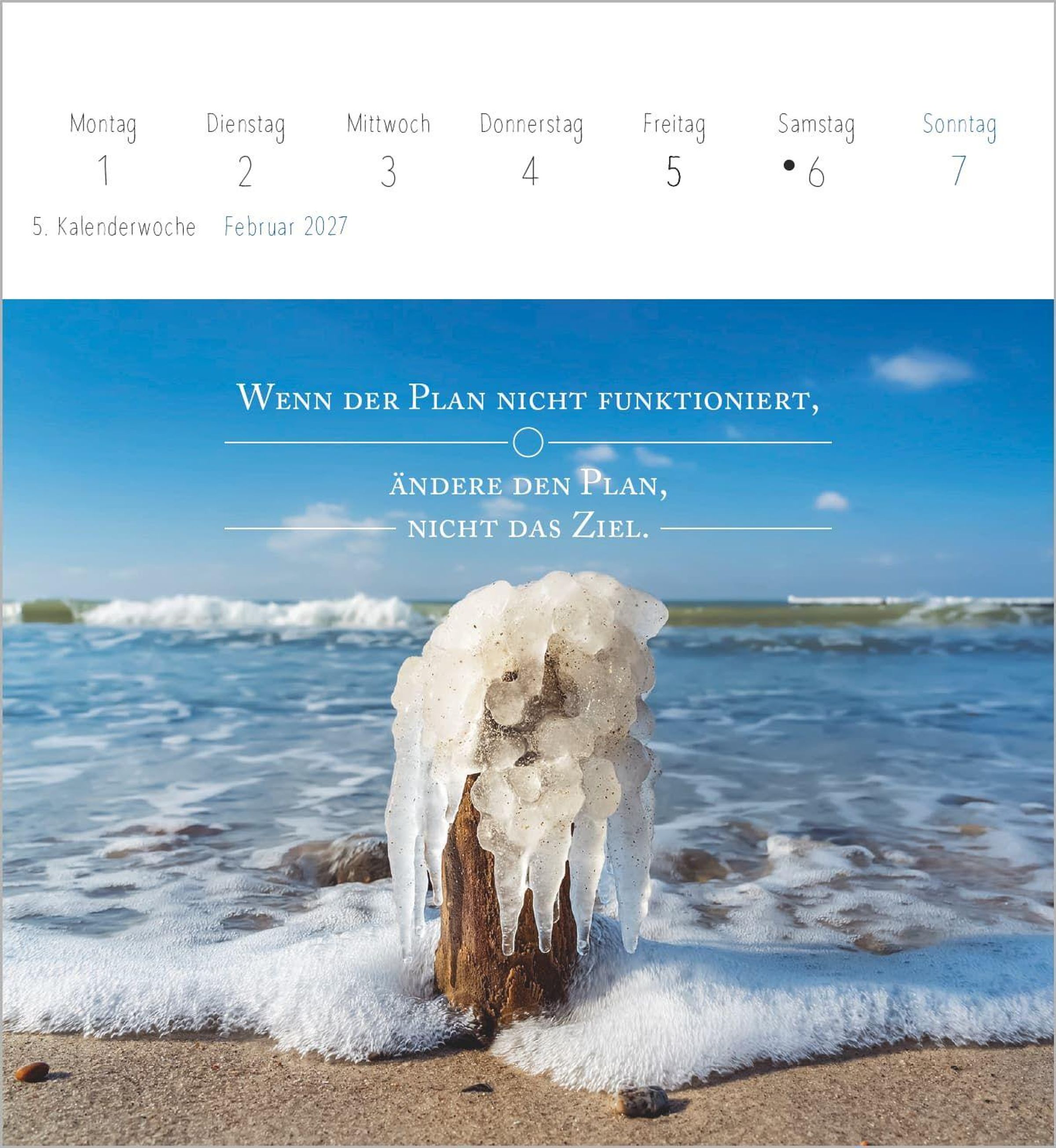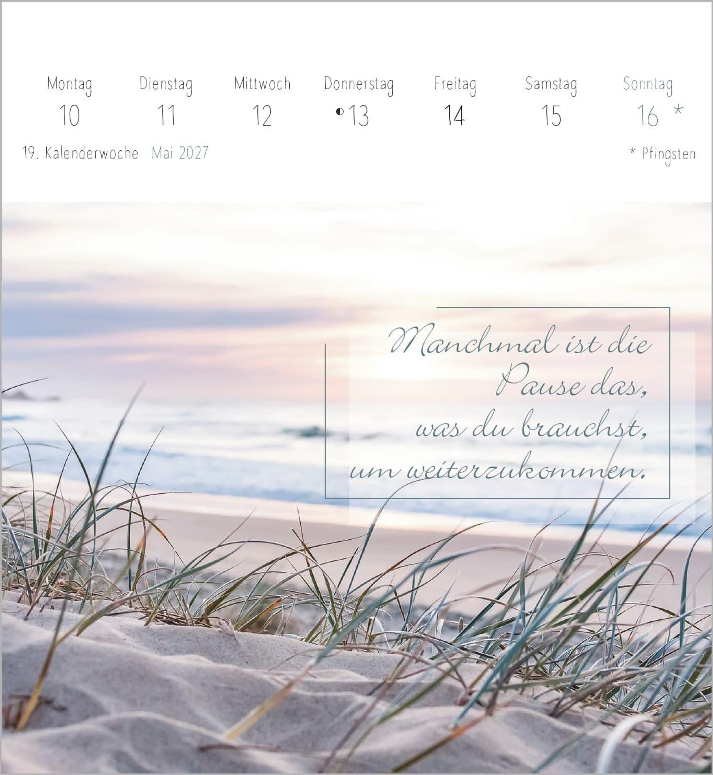 Mit Im Einklang mit dem Moment 2027 holst du dir Woche für Woche kleine Ruheinseln in den Alltag. Der Mini-Tischaufstellkalender begleitet dich durch 53 Wochen mit stimmungsvollen Fotografien und ausgewählten Sinnsprüchen, Weisheiten und inspirierenden Gedanken. Ob als achtsamer Start in den Tag, als kurze Erinnerung zwischendurch oder als motivierender Blickfang am Arbeitsplatz: Dieser Kalender schenkt dir Momente zum Innehalten, Durchatmen und Neu-Ausrichten -- im typischen, hochwertigen Stil der Alpha Edition.