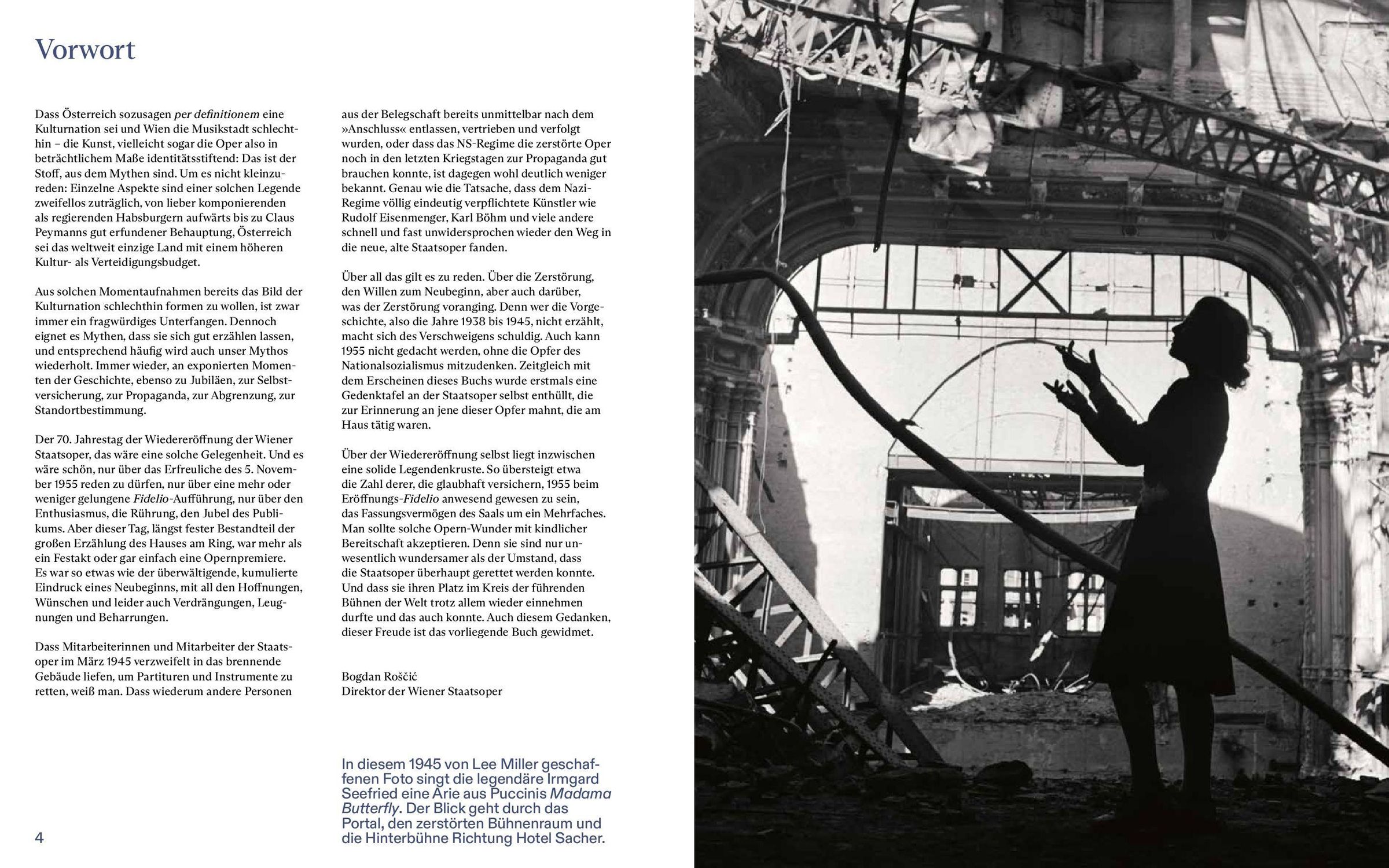 Die Bilder der am 12. März 1945 zerstörten Staatsoper lassen niemanden unberührt. So wenig wie die Geschichte ihres Wiederaufbaus, an dem die Menschen der jungen Zweiten Republik regen Anteil nahmen. Die Wiedereröffnung des Hauses am Ring am 5. November 1955 ist dennoch viel mehr als ein außergewöhnlicher Opernabend: Wie im Fokus eines Brennglases kumulieren an diesem Abend schuldhafte Vergangenheit, Beharren und Leugnen, aber auch die Suche nach einer neuen Identität und der gemeinsame Wille zu einem Neubeginn. Eine Vielzahl bisher selten gezeigter Fotografien und Texte renommierter Expert: innen erzählen von der Wiener Staatsoper und beleuchten gleichzeitig ein erstaunlich vielschichtiges Kapitel österreichischer Zeitgeschichte.