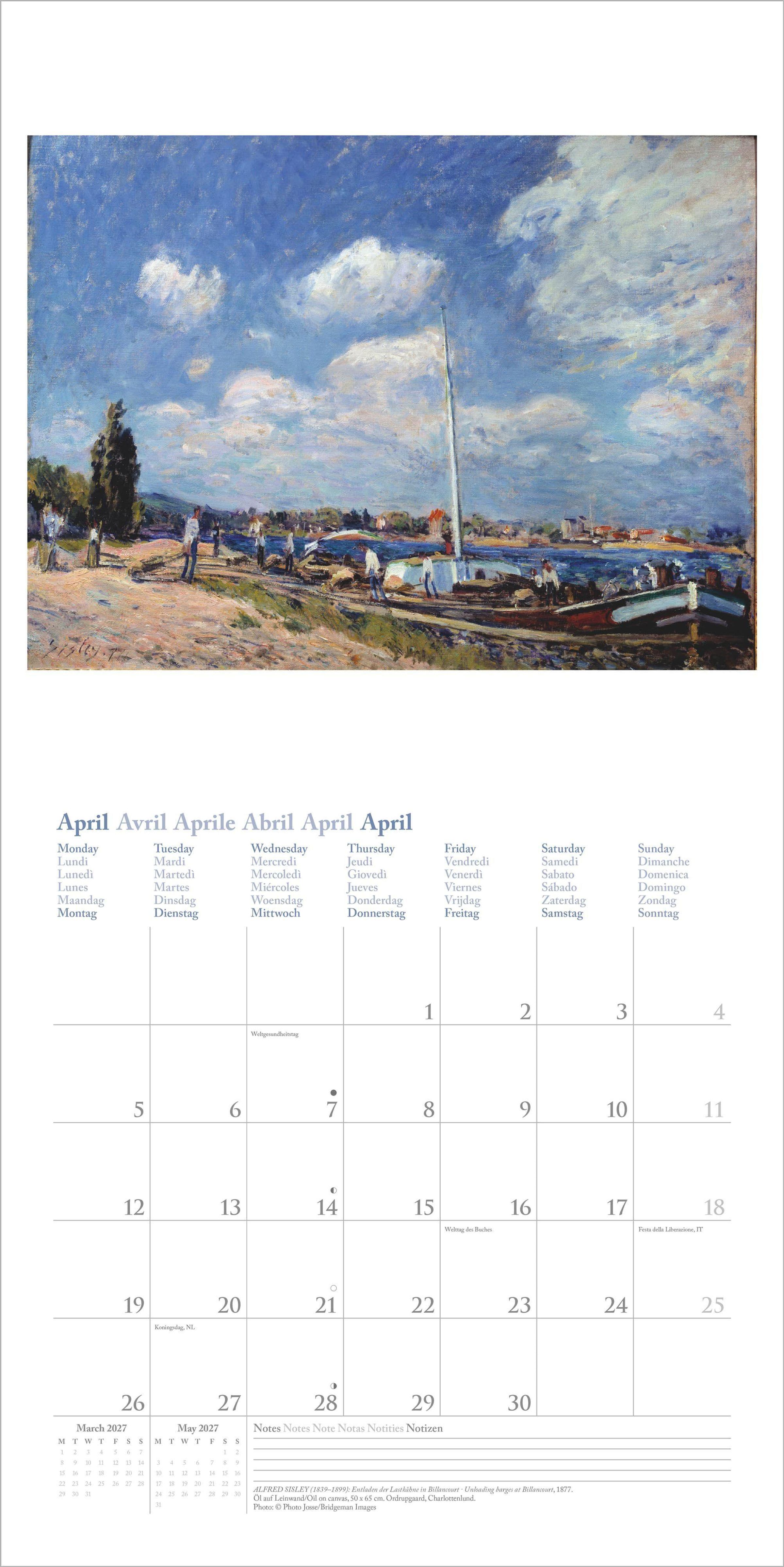 Dieser hochwertige Kunstkalender bringt die lichtdurchfluteten Werke der großen Impressionisten direkt an Ihre Wand -- ein ästhetischer Begleiter für das Jahr 2027.