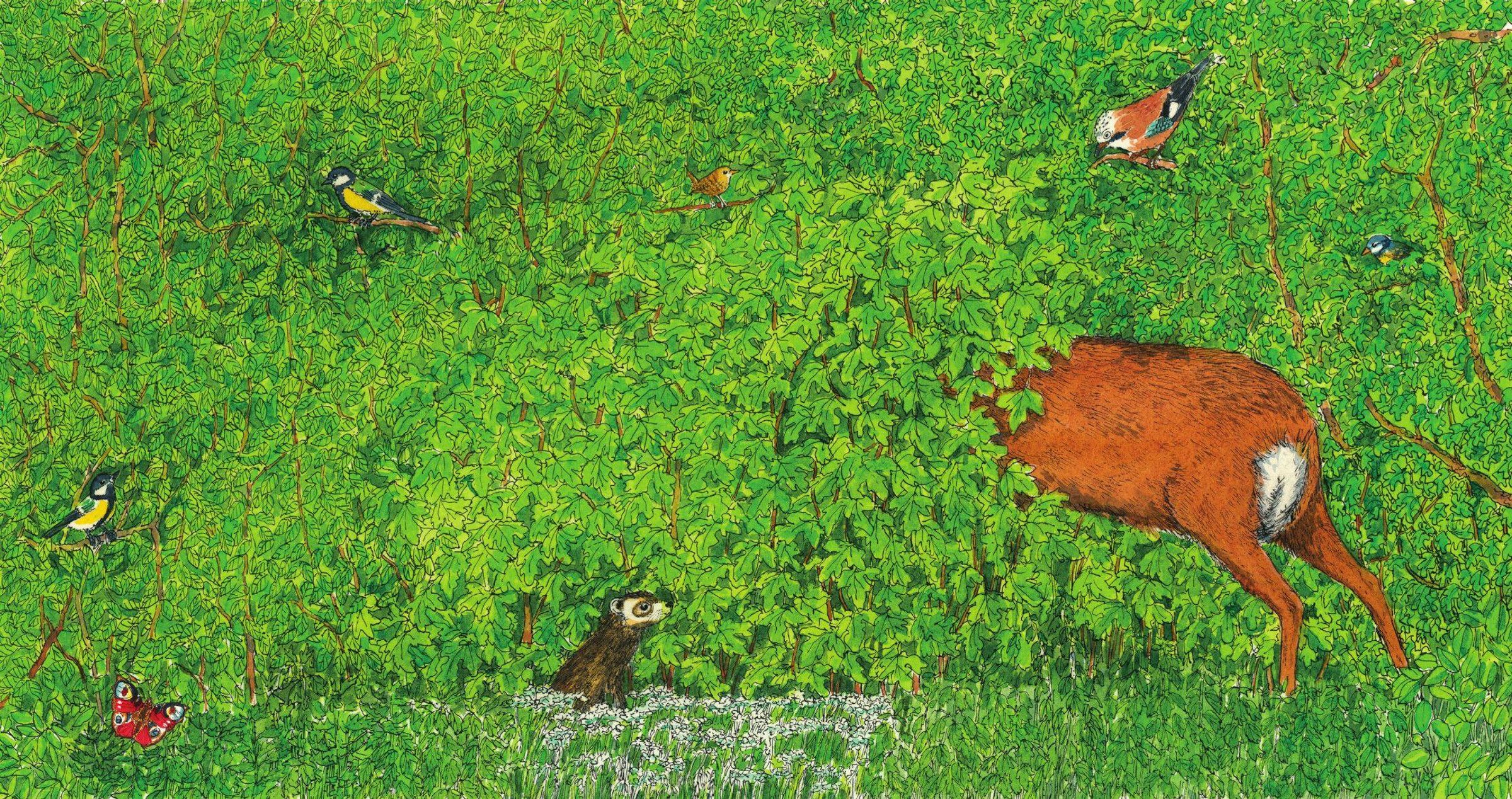 Im Geleit eines Rehs betreten wir den Buchenwald. Jedes Blättern führt uns etwas tiefer zwischen die Bäume. Es raschelt und zwitschert, klettert, wuselt und schleicht um uns herum. Eine Vielzahl unterschiedlichster Tiere können wir entdecken und Seite für Seite ein Stück ihres Lebens beobachten. IN DEN WALD zeigt einen alten Buchenwald, wie ihn Rüdiger Tillmann seit seiner Kindheit liebt. Er wird hier zu einer Bühne, bespielt von tierischen Darstellern, um eine Wanderung durch ein bedrohtes Ökosystem zu wagen, und bleibt dabei doch der wahre Protagonist, der mit seinen stehenden, umgefallenen, alten und uralten Bäumen einer Vielzahl von Lebewesen und deren Familien ein Zuhause bietet.