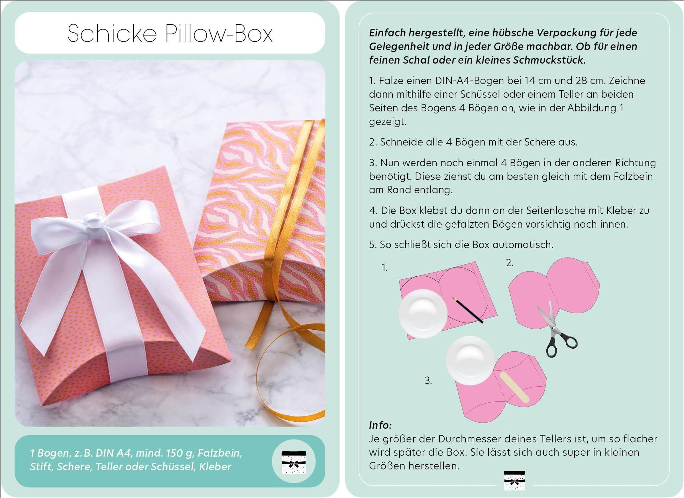 "Entspannung mit DIY", 50 Karten. Bild einer Frau mit orangefarbenem Haar. Zwei Karten: "Essstäbchenhalter", "Geschenkverpackung"., Diverse