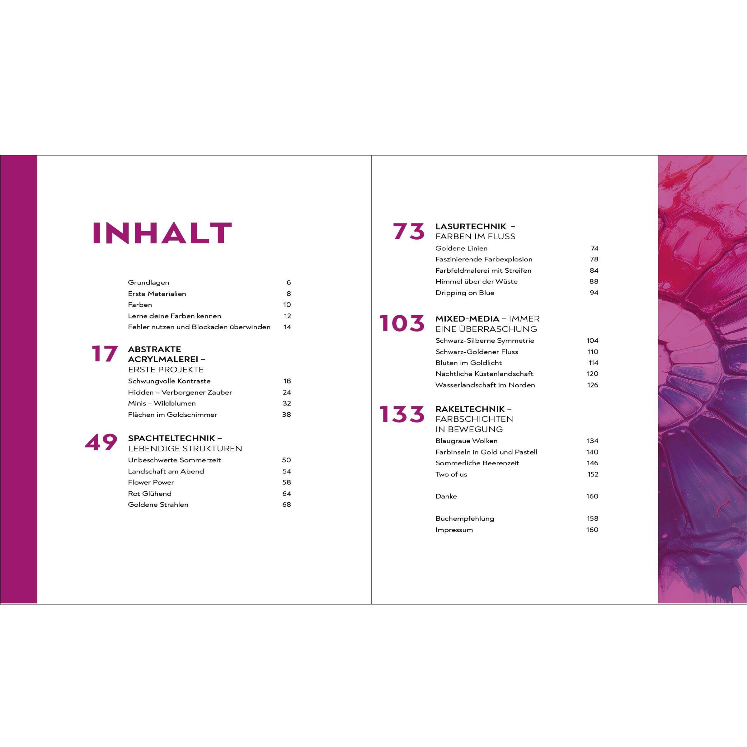 Entdecke die Welt der abstrakten Acrylmalerei mit der Künstlerin Inga Knaak - bekannt durch ihren erfolgreichen YouTube-Kanal "Inga's Color Art". In ihrem Buch zeigt sie, wie ihre Kunstwerke entstehen: Schicht für Schicht. Grundlage dafür sind Techniken wie Lasuren und flüssige Farben, Spachtel- und Rakeltechniken , Mixed Media, Schlagmetall (Blattgold) und klassische abstrakte Acrylmalerei.