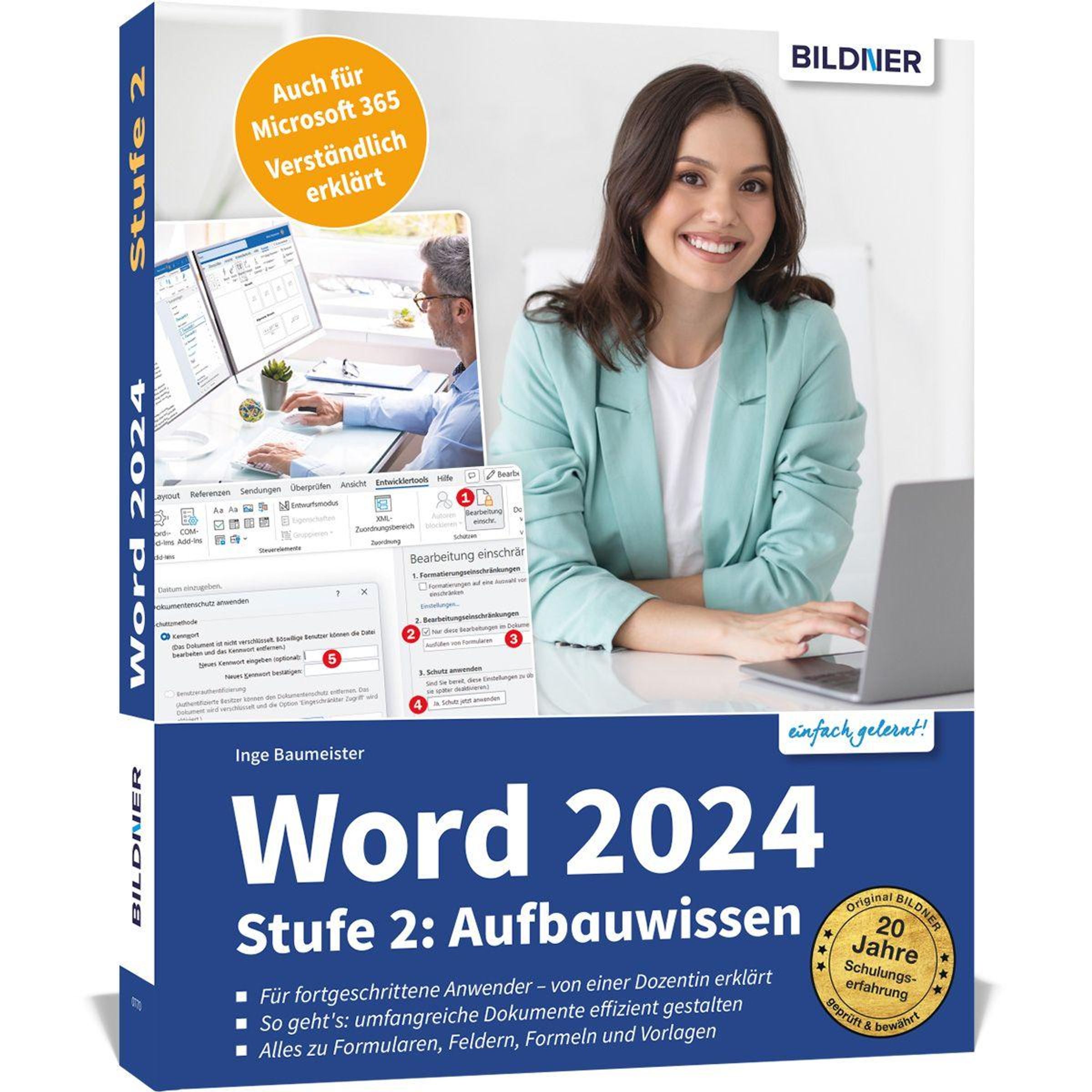 Von A wie Alternativtext bis Z wie Zitate: Lernen Sie, wie Sie Format- und Dokumentvorlagen sowie den Seriendruck nutzen, Überschriften nummerieren, ein Inhaltsverzeichnis erstellen, Ihre Dokumente für den beidseitigen Druck einrichten oder mathematische Ausdrücke und Symbole einfügen. Zudem zeigt Ihnen die Autorin, welche Möglichkeiten in Feldern und Formularsteuerelementen stecken. Profitieren Sie von Inge Baumeisters langjähriger Erfahrung als Dozentin in der Erwachsenenbildung und freuen Sie sich auf praktische Anleitungen, Beispiele und Tipps , die Ihnen viel Zeit sparen!