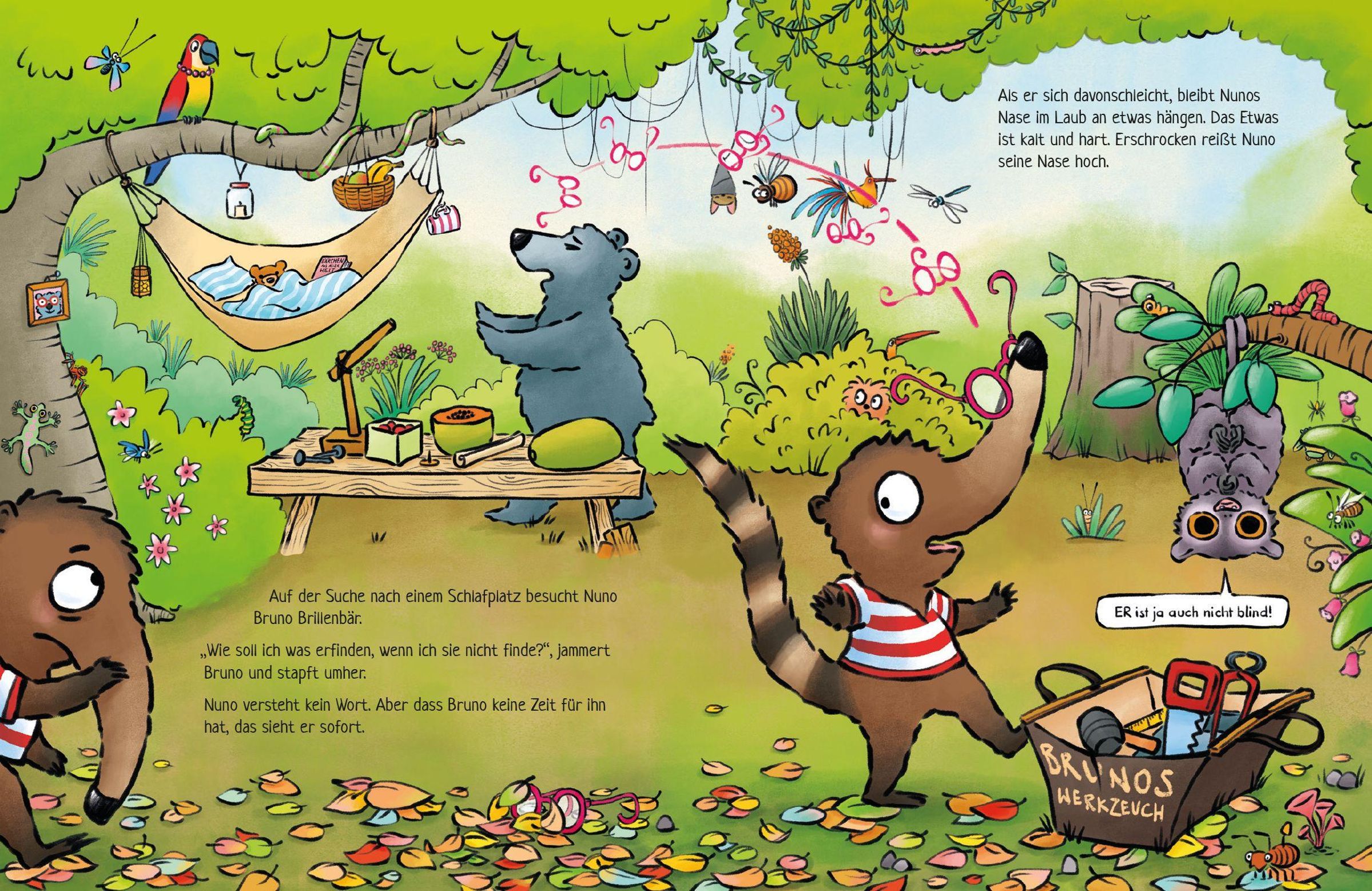Nuno Nasenbär mag seine lange Nase - meistens jedenfalls. Mit ihr erschnüffelt er die besten Leckereien und oft führt sie ihn an neue, spannende Orte. Doch dann kommt ein Tag, der alles verändert: Nuno verheddert sich mit seiner Nase, stolpert und bringt schließlich sein geliebtes Baumhaus zum Einsturz! Das stellt Nunos Selbstbild gehörig auf den Kopf. Während für ihn von da an ein Nasen-Missgeschick auf das andere folgt, sehen seine Freundinnen und Freunde einen ganz anderen Nuno - und bauen heimlich ein neues Zuhause für ihn. Kann die Wahrnehmung der anderen Nuno mit seiner Nase versöhnen?