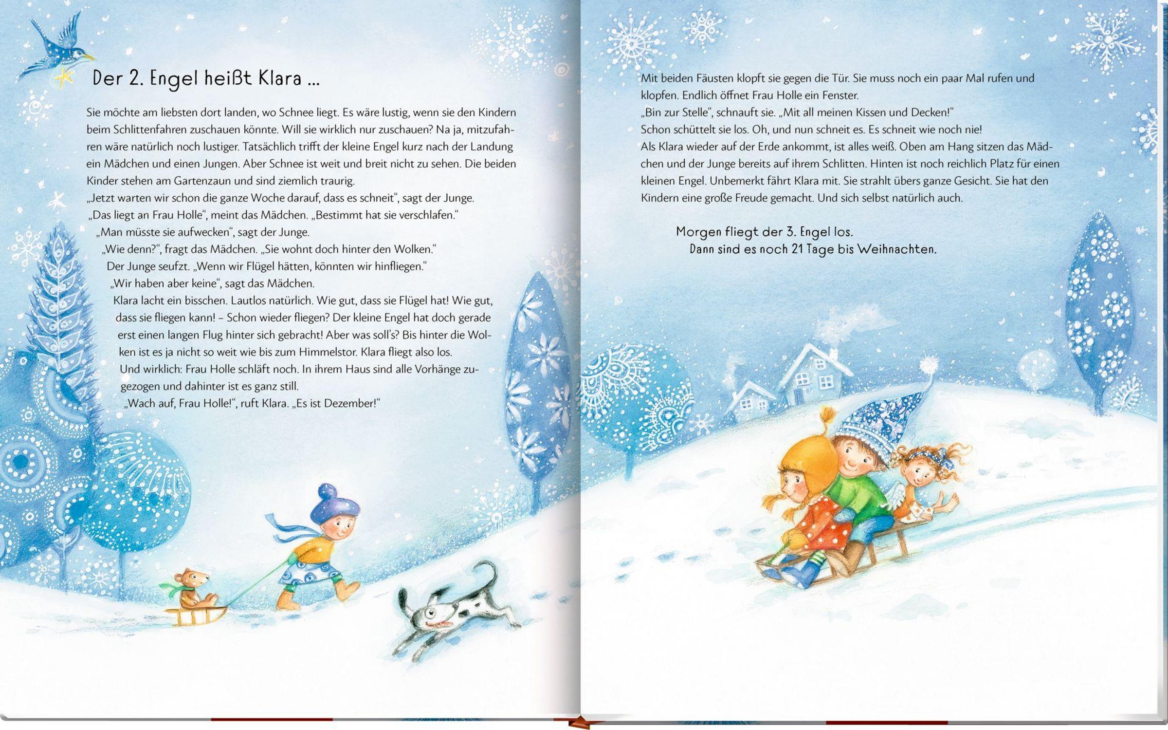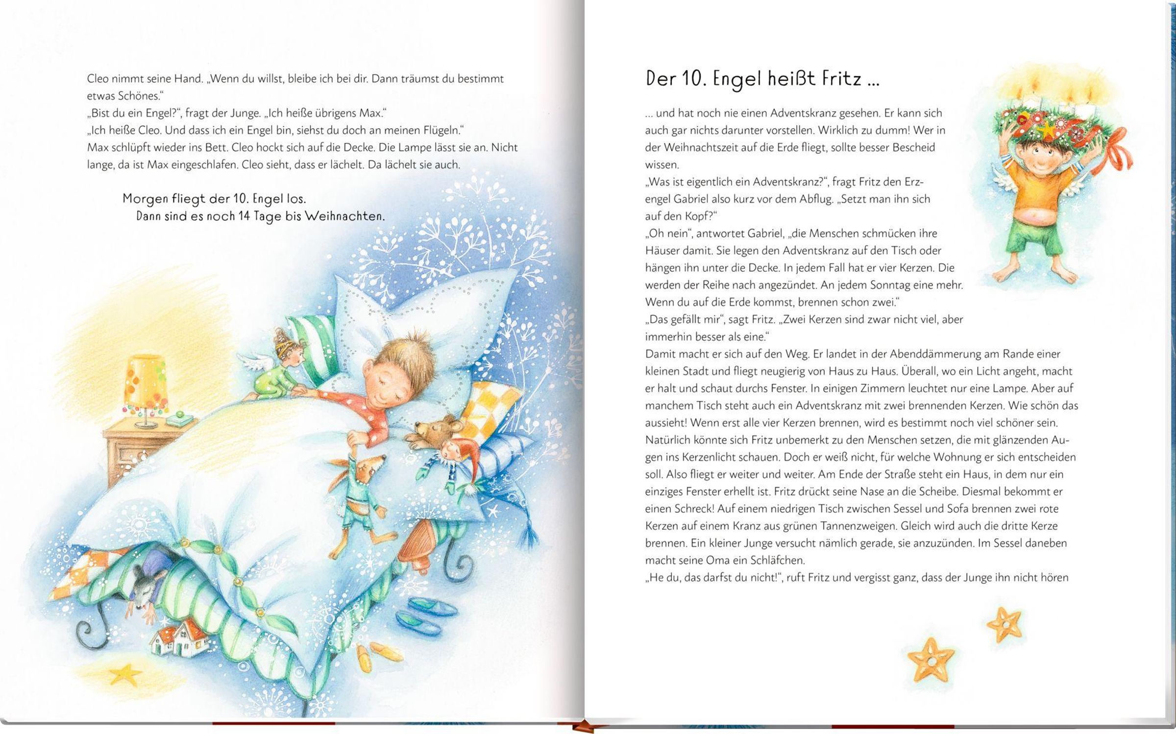 An jedem Tag im Advent kommt ein kleiner Engel hinab auf die Erde und hilft dort, wo Mut, Trost oder ein Funke Weihnachtszauber fehlt. Der erste Engel heißt Linus und er hat keine Angst. Höchstens ein bisschen Herzklopfen. Erzengel Gabriel führt ihn an der Hand zum großen Himmelstor.