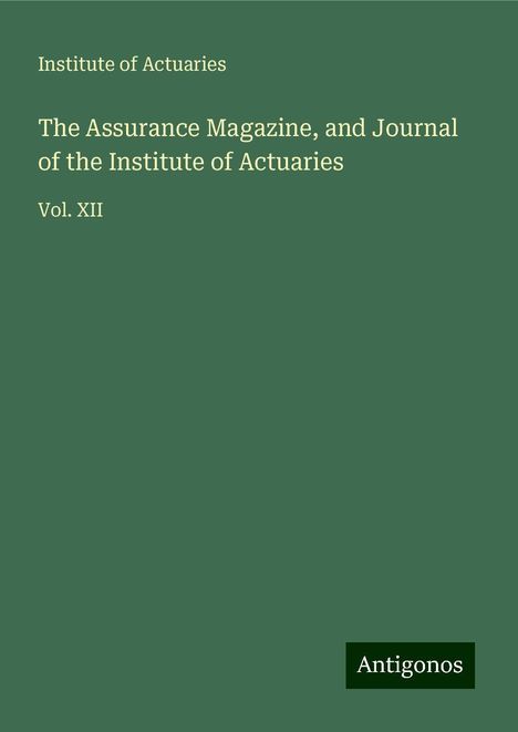 Institute Of Actuaries: Institute Of Actuaries: Assurance Magazine, and Journal of t, Fester Einband