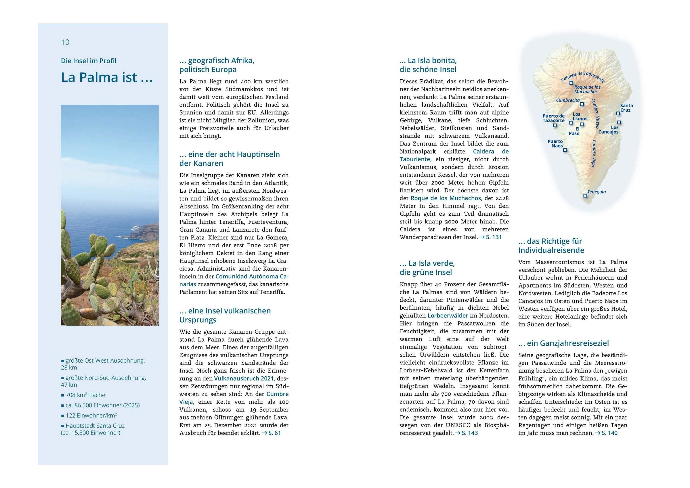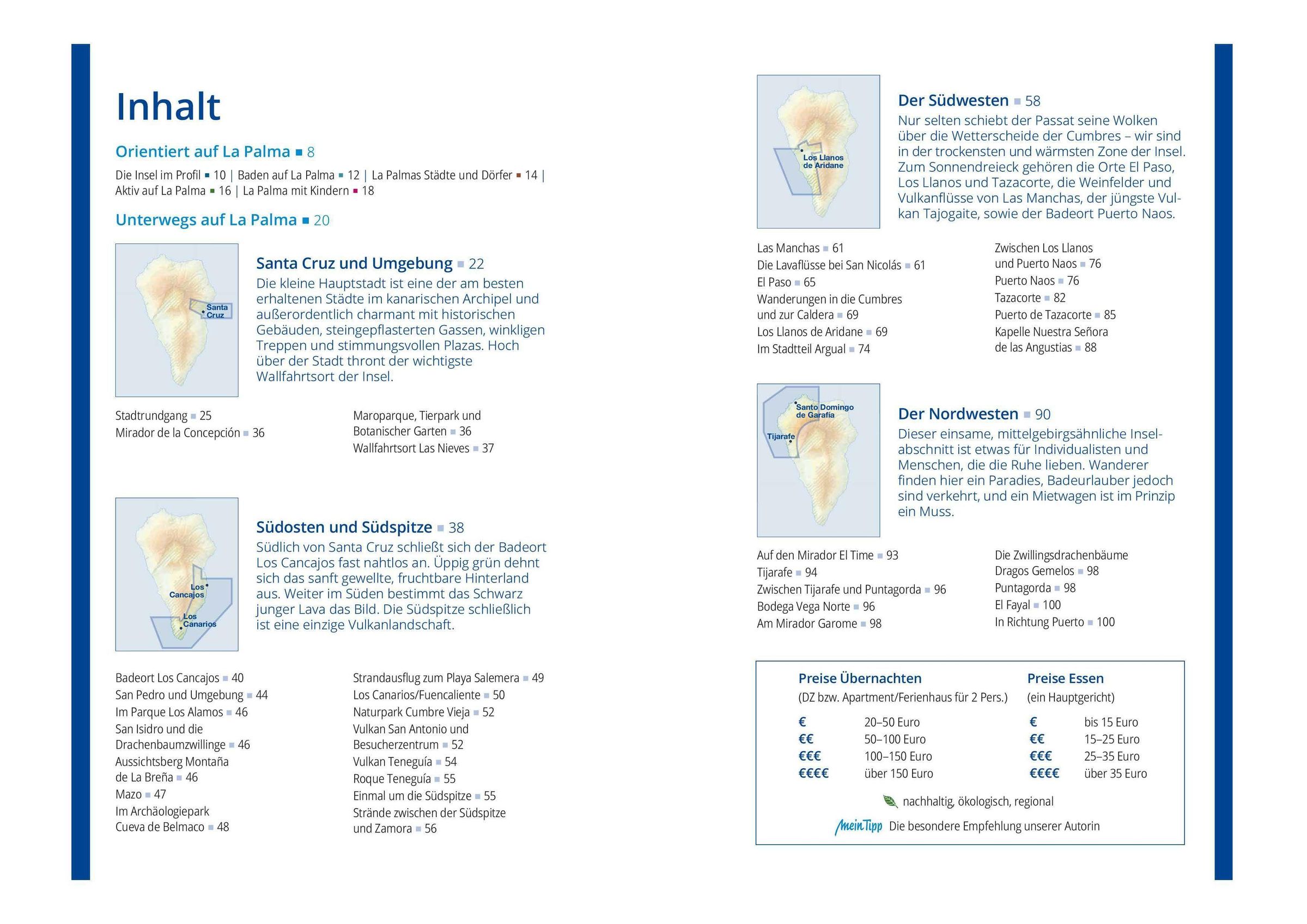 Von gemütlichen Panoramarunden am Cumbre-Kamm bis zu fordernden Lava-Pfaden im Süden: Alle Touren sind exakt beschrieben und mit GPS-Tracks zum Download versehen. Als Extra enthält der Reiseführer die schönsten Ausflüge mit dem Auto.