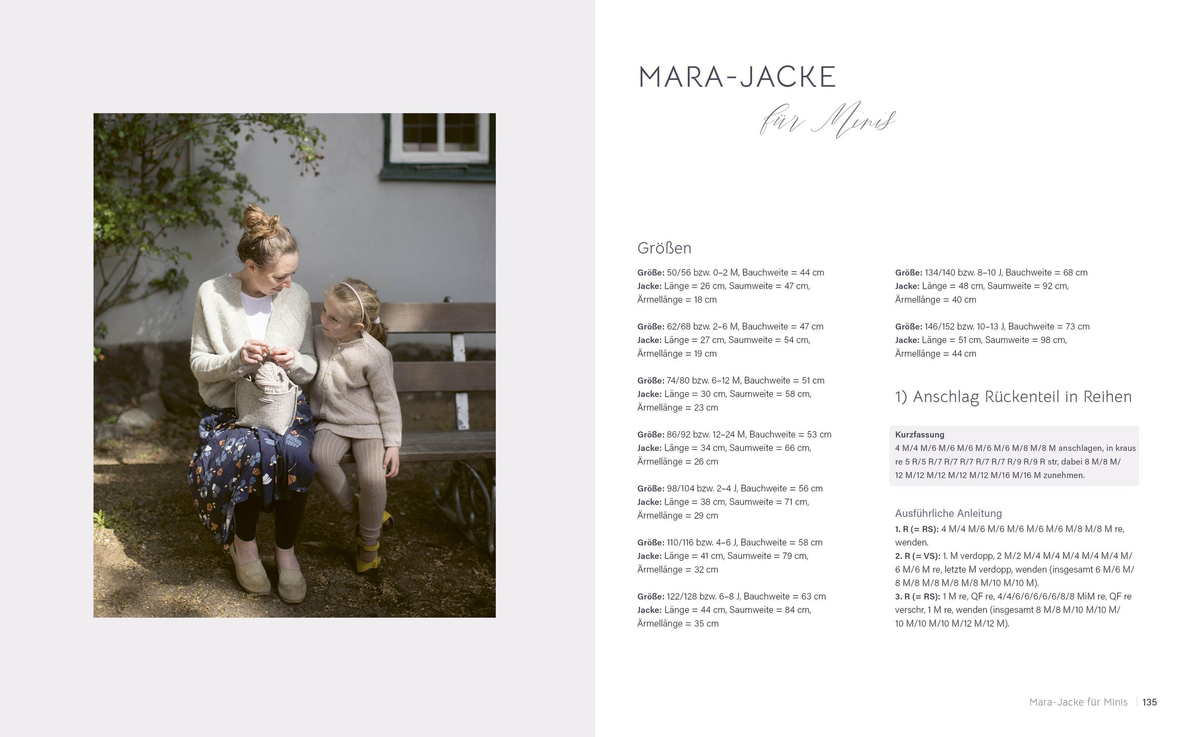 Ein Design - zwei Größen: Jedes Modell ist für Erwachsene und Kinder beschrieben - vom klassischen Pullover bis zur modernen Strickjacke. Damit entstehen 20 Strickanleitungen, die zeitloses Design für Groß und Klein möglich machen.