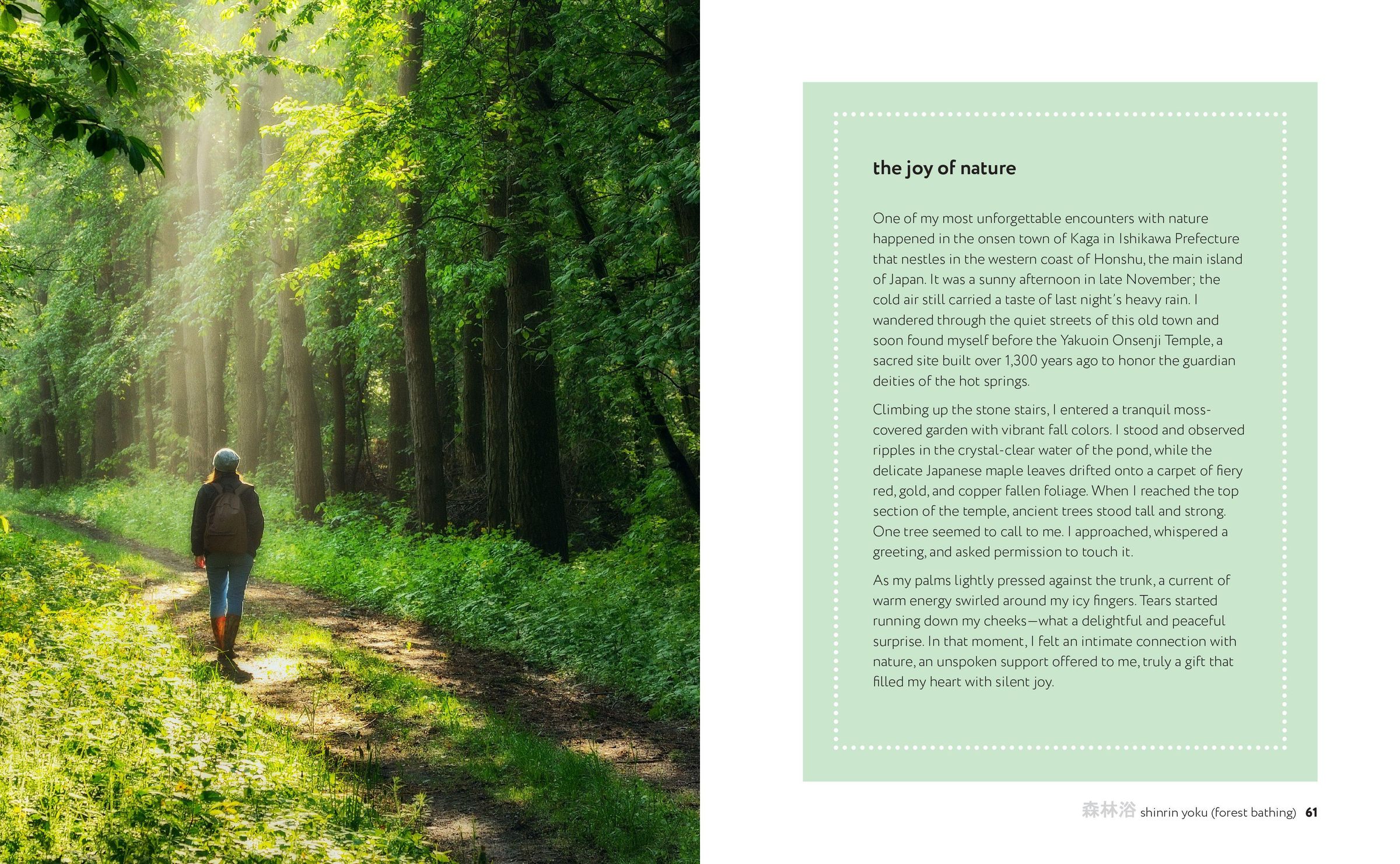 From healing hot springs and traditional Japanese cuisine to immersive forest bathing and restorative tea ceremonies, the beautiful practices in this book will empower you to reconnect with yourself. You will also be introduced to mindful meditation and Zen-inspired minimalism as well as other philosophical concepts such as ikigai - the reason for being - which will guide you towards a life of joy and peace.