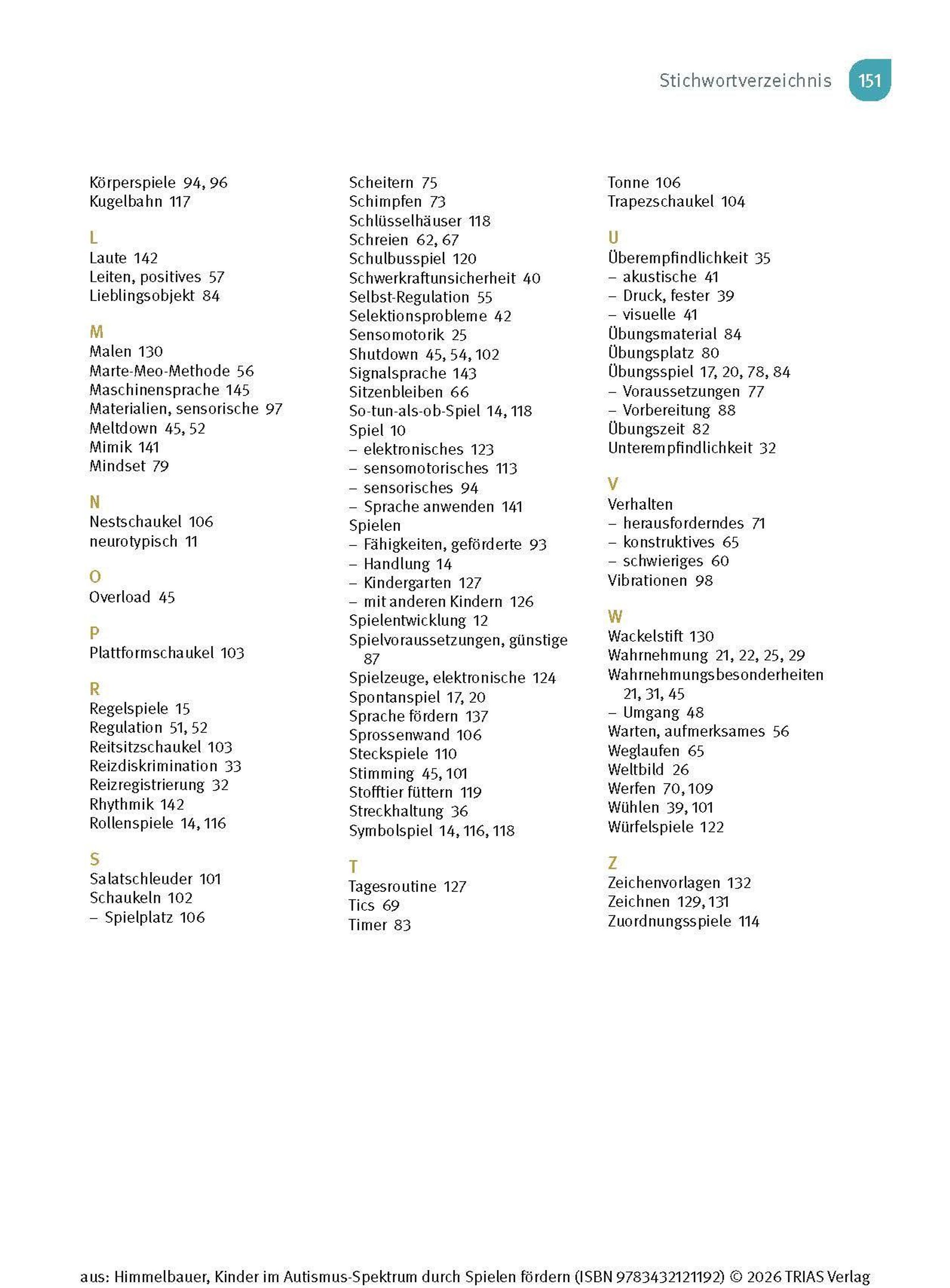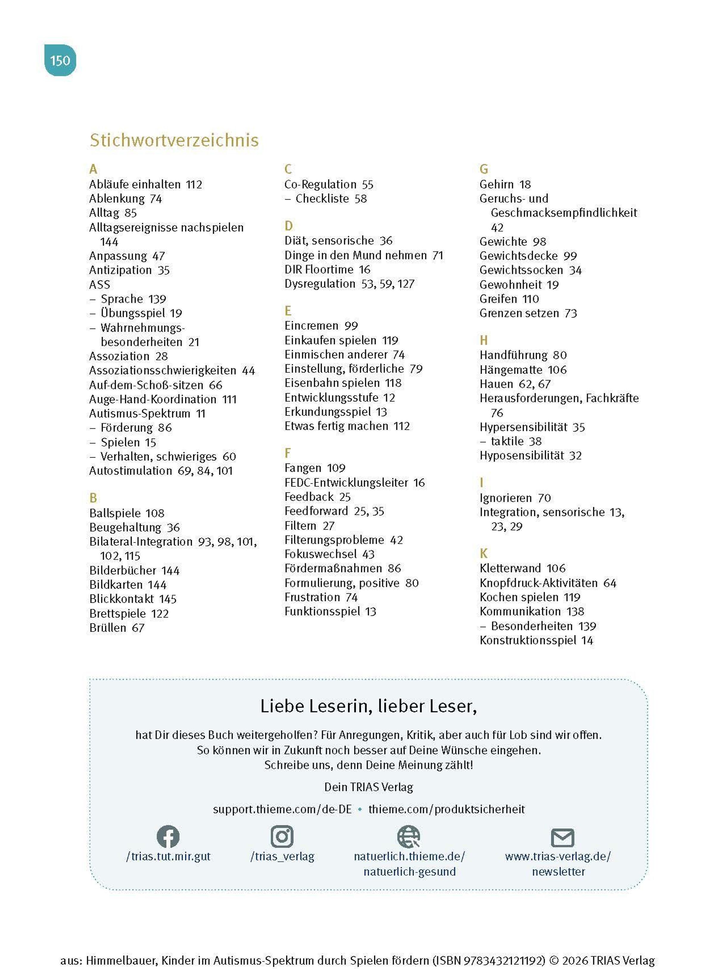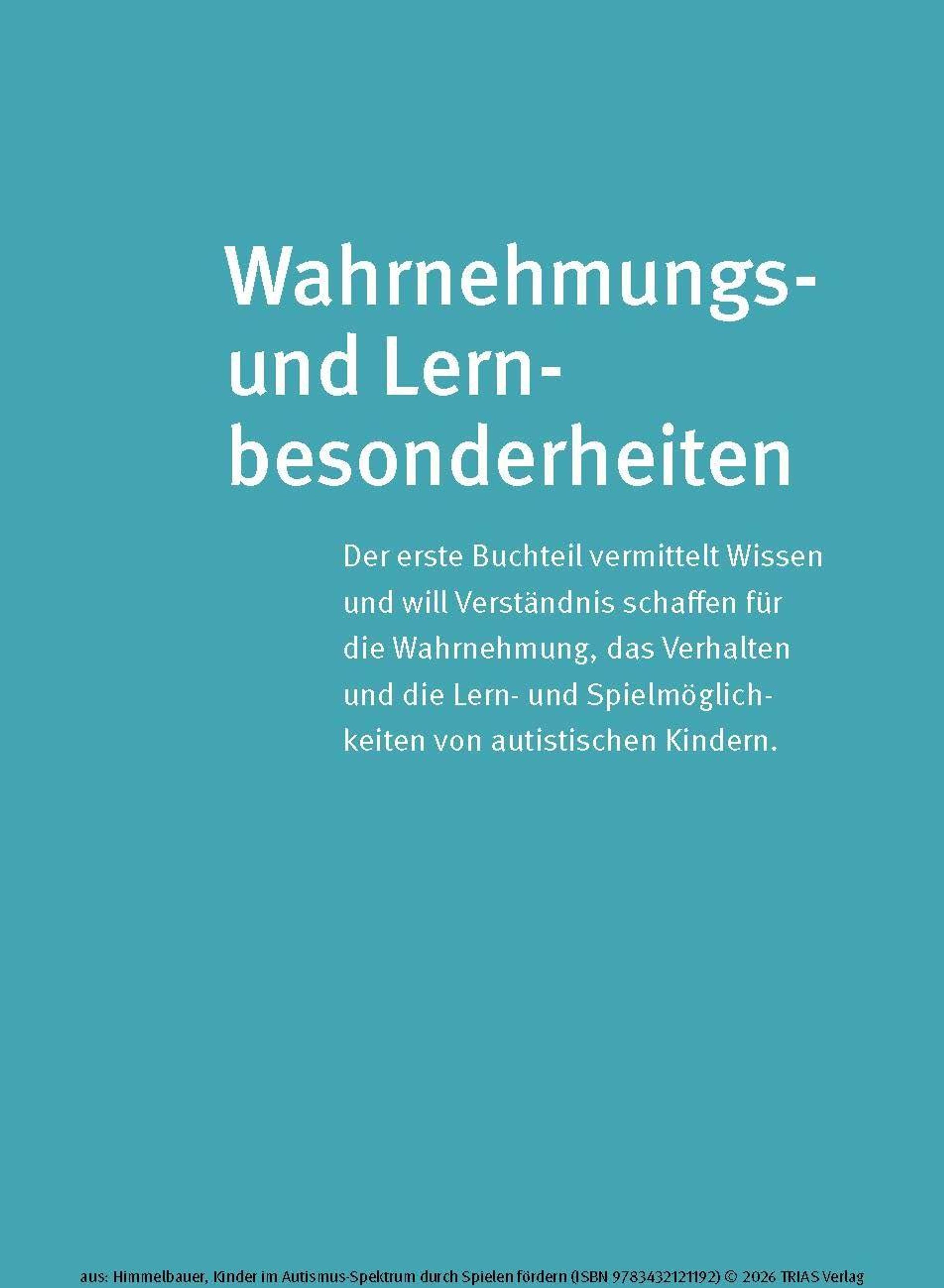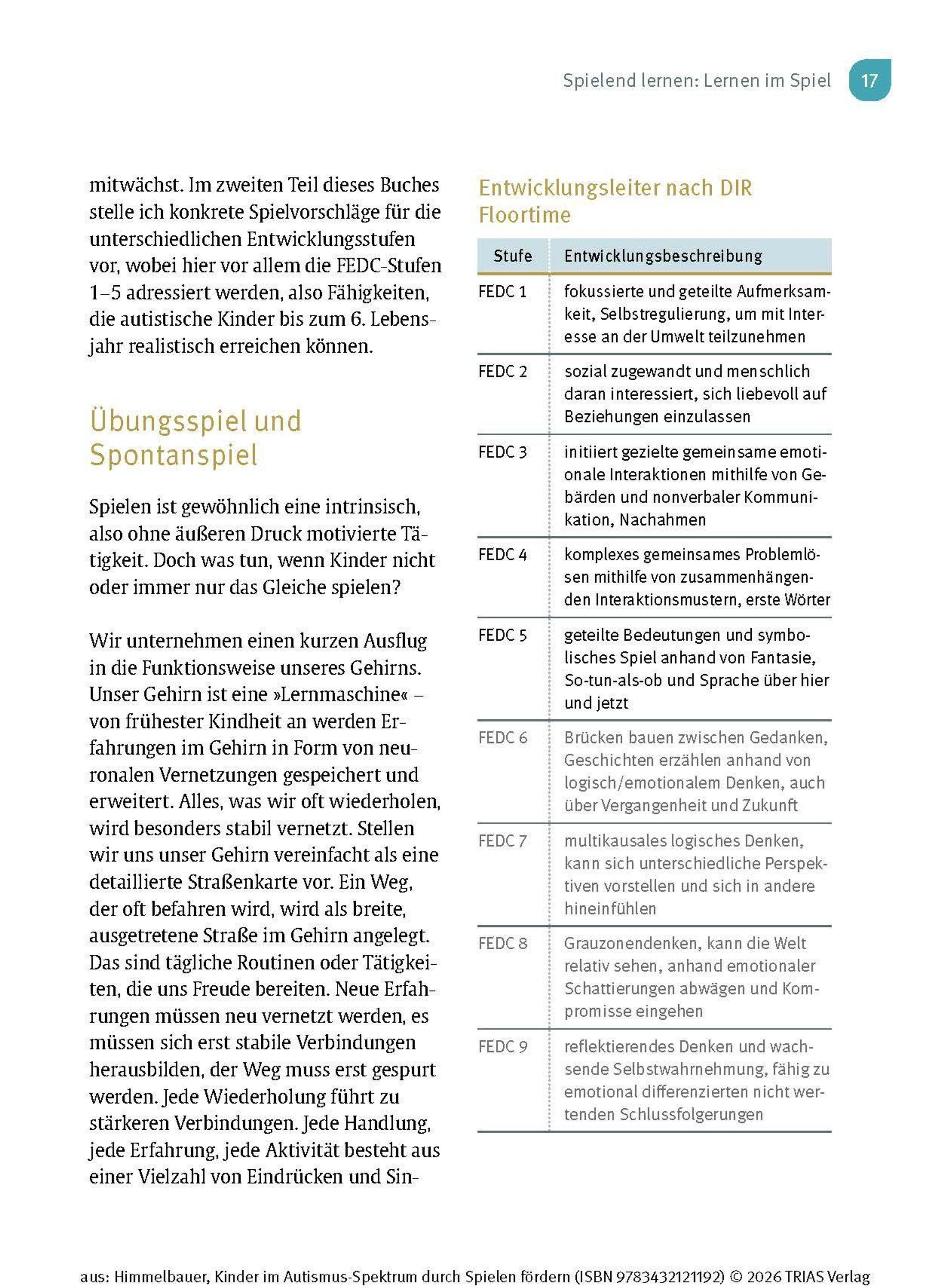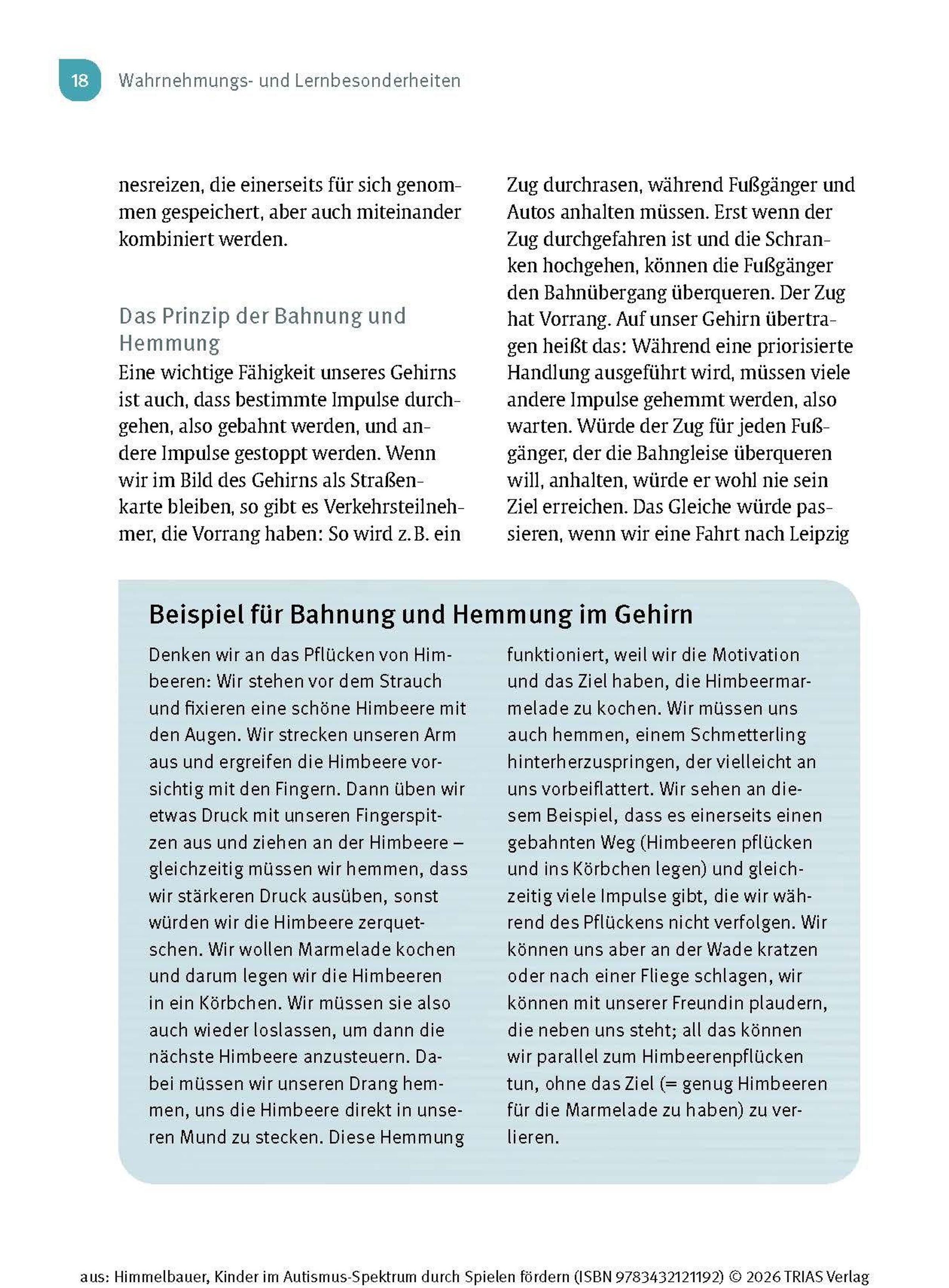 Wenn Dein Kind die Diagnose "Autismus-Spektrum-Störung" (ASS) erhält oder Du Kinder aus dem Spektrum als Therapeutin oder Pädagogin begleitest, stellst Du Dir bestimmt die Frage: Wie kann ich das Kind unterstützen, damit es sich gut entwickeln kann? Kinder im Autismus-Spektrum zeigen Auffälligkeiten in vielen Entwicklungsbereichen und auch in ihrem Spielverhalten. Sie spielen gerne für sich und haben Vorlieben für bestimmte Abläufe und Aktivitäten, die sie kaum variieren. Im Kleinkind- bzw. Kindergartenalter ist Spielen der Schlüssel zum Lernen. Ergotherapeutin Irmgard Himmelbauer zeigt Dir in diesem Buch, wie Du mit einfachen Spielen das Kind Schritt für Schritt fördern kannst.
