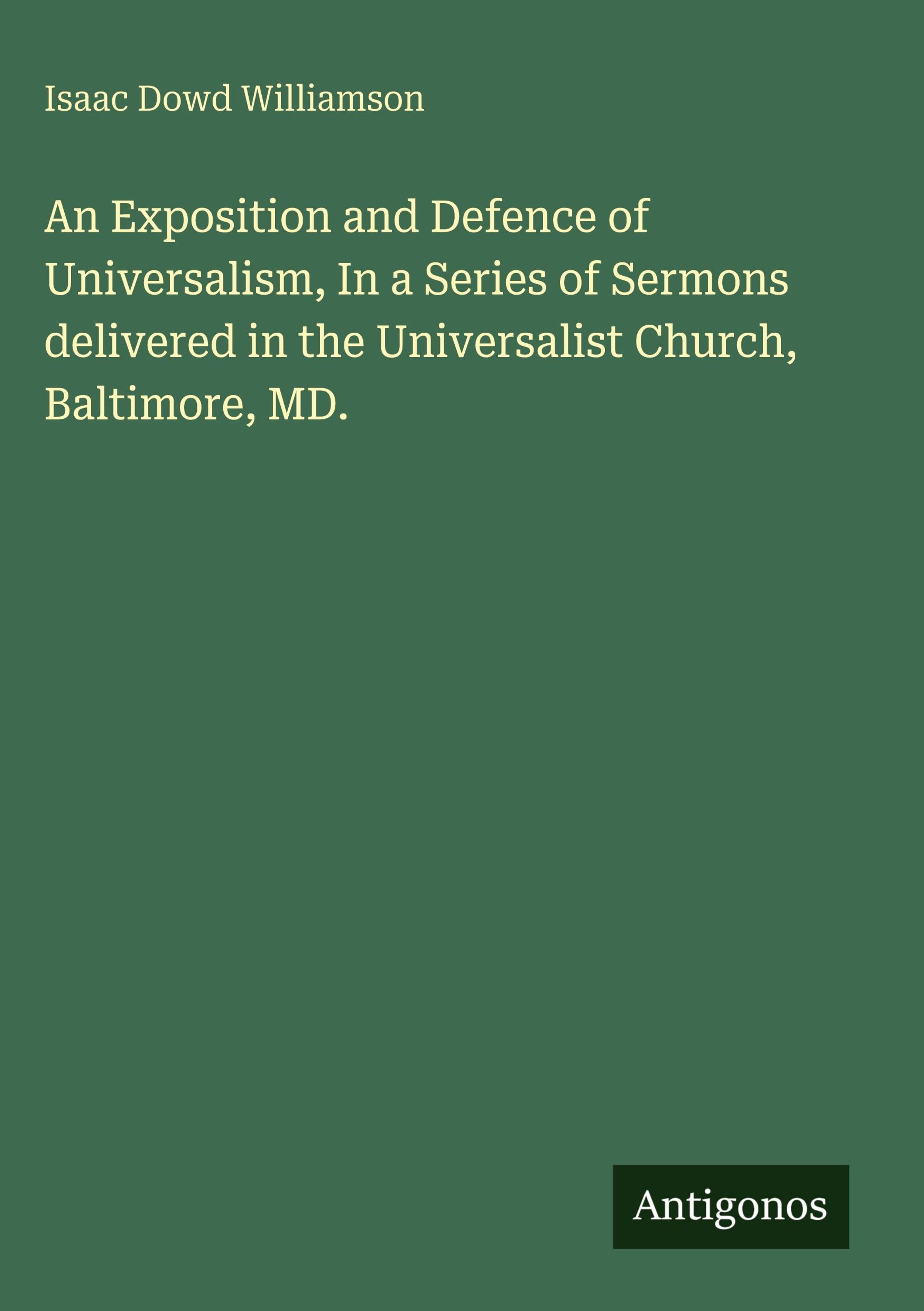 Isaac Dowd Williamson: An Exposition and Defence of Universalism, In a Series of Sermons delivered in the..., Gebunden