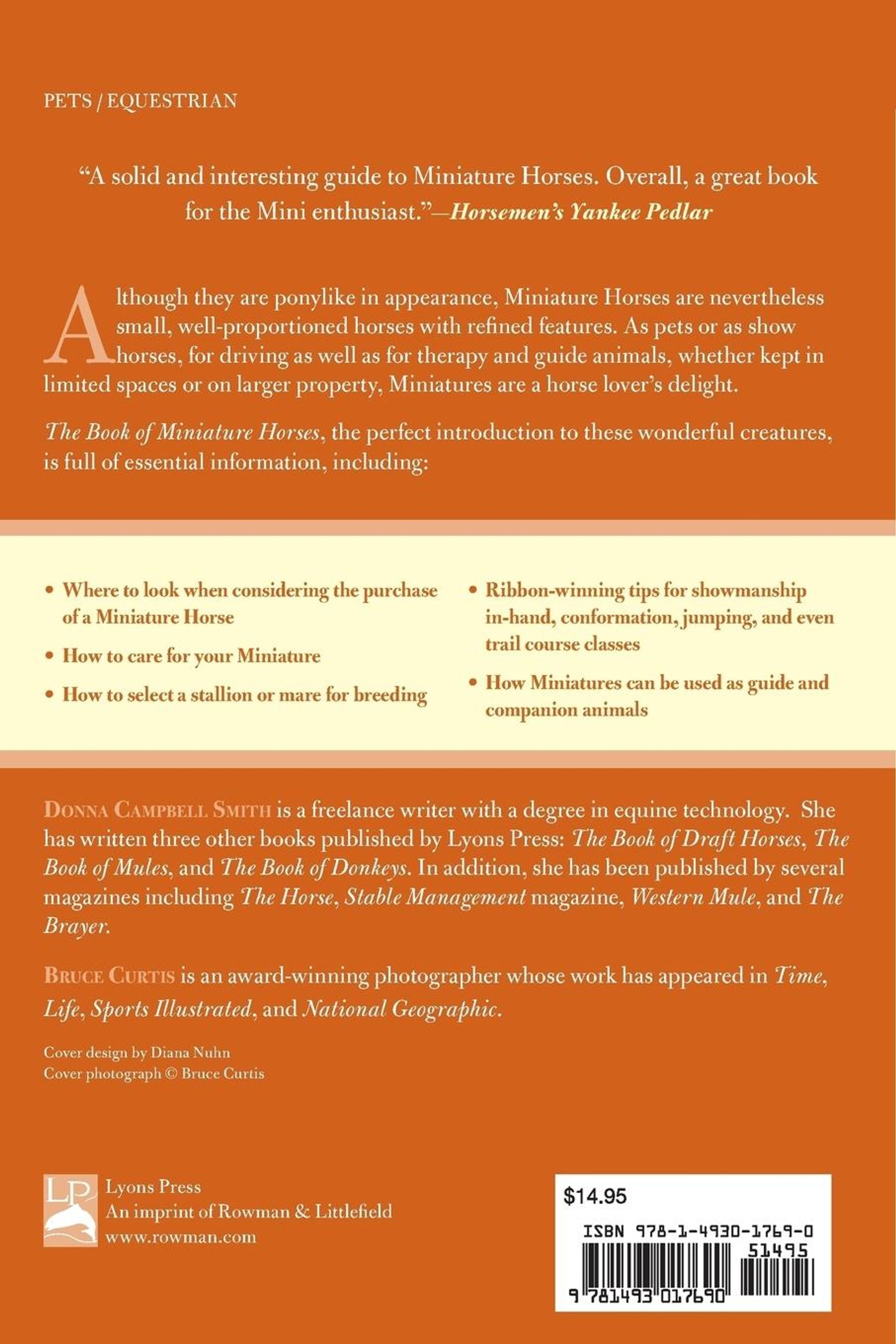 Although pony-like in stature (measuring no more than thirty-eight inches at the shoulder), miniature horses nevertheless resemble small, well-proportioned horses with refined features. As pets or show horses, for driving, as well as therapy and guide animals, miniatures are ideal whether kept in limited space or on larger property. With stunning photographs by Bruce Curtis, The Book of Miniature Horses is as delightful an introduction to this fascinating breed as the horses themselves.