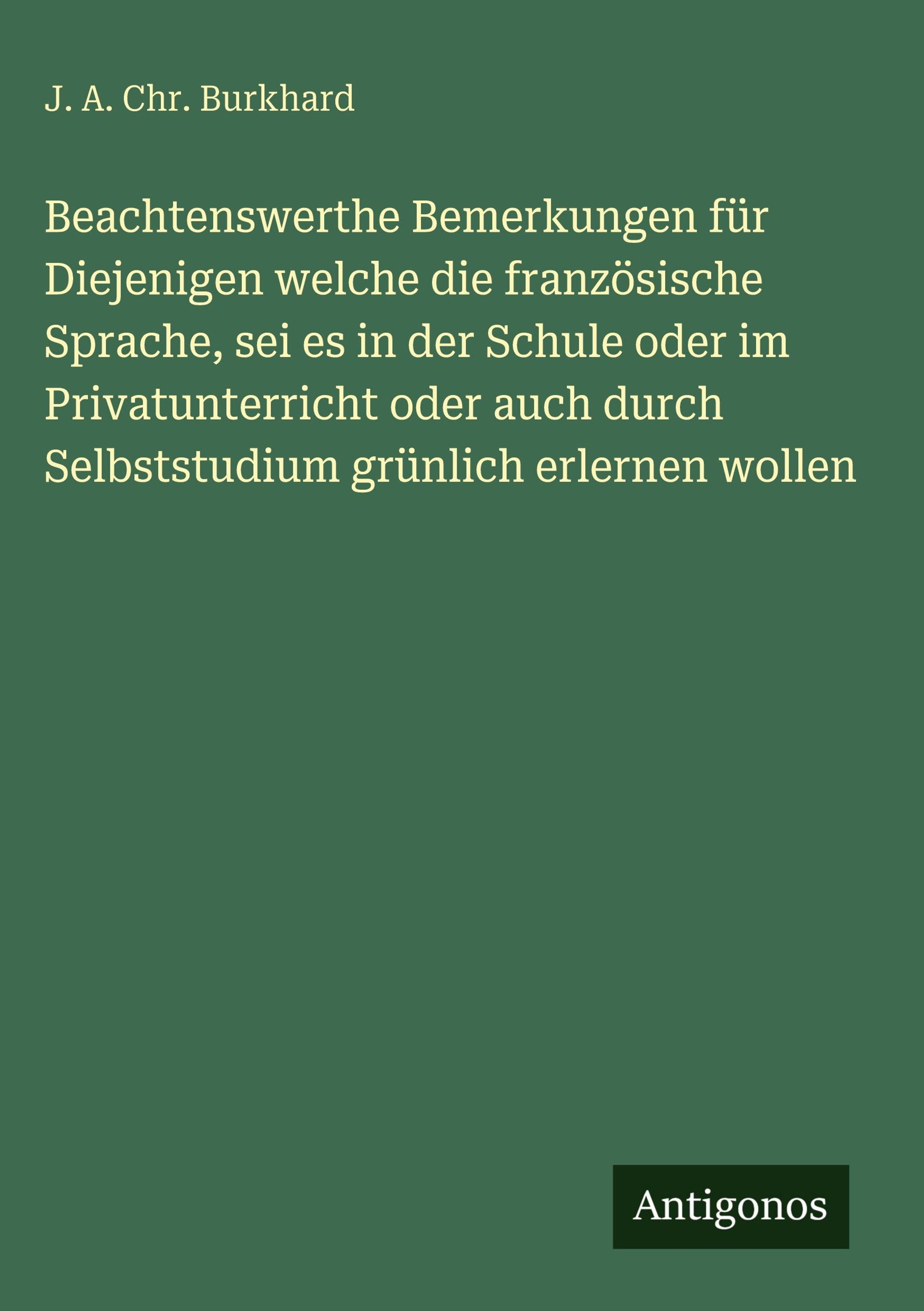 J. A. Chr. Burkhard: Beachtenswerthe Bemerkungen für Diejenigen welche die französische Sprache, sei es in der..., Gebunden