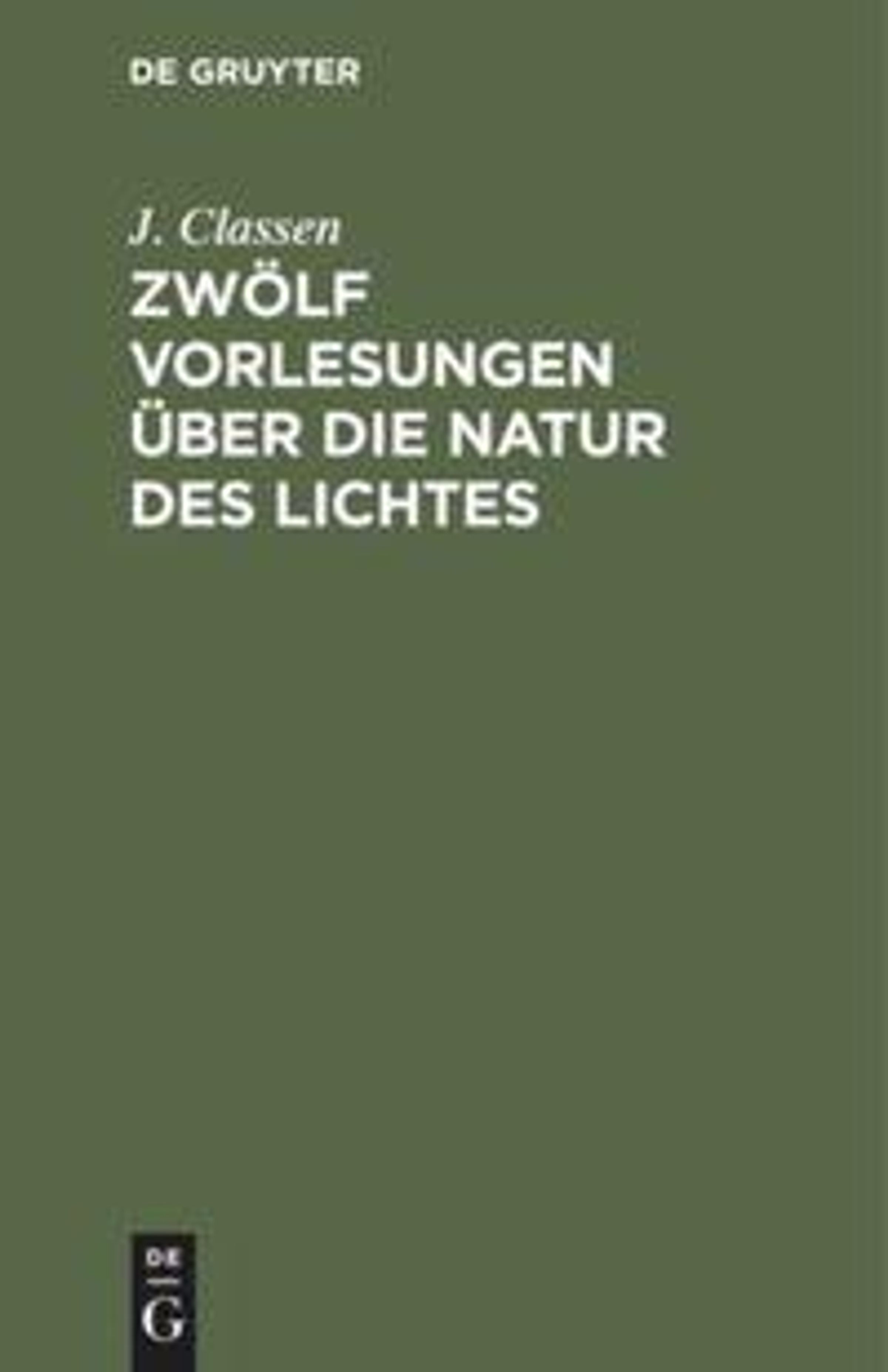 J. Classen: Zwölf Vorlesungen über die Natur des Lichtes, Gebunden