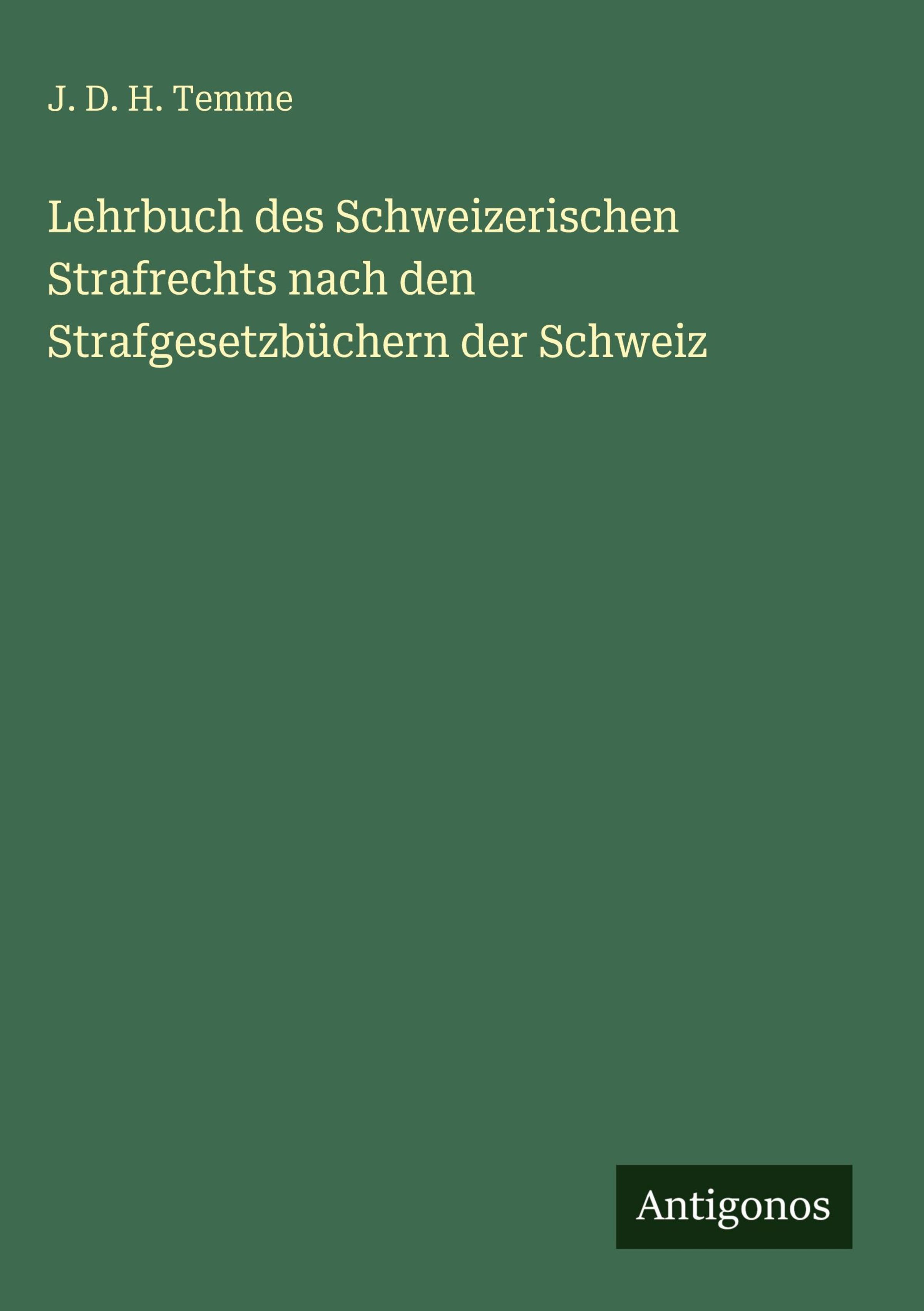 J. D. H. Temme: Lehrbuch des Schweizerischen Strafrechts nach den Strafgesetzbüchern der Schweiz, Gebunden