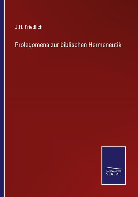 J. H. Friedlich: Prolegomena zur biblischen Hermeneutik, Kartoniert / Broschiert