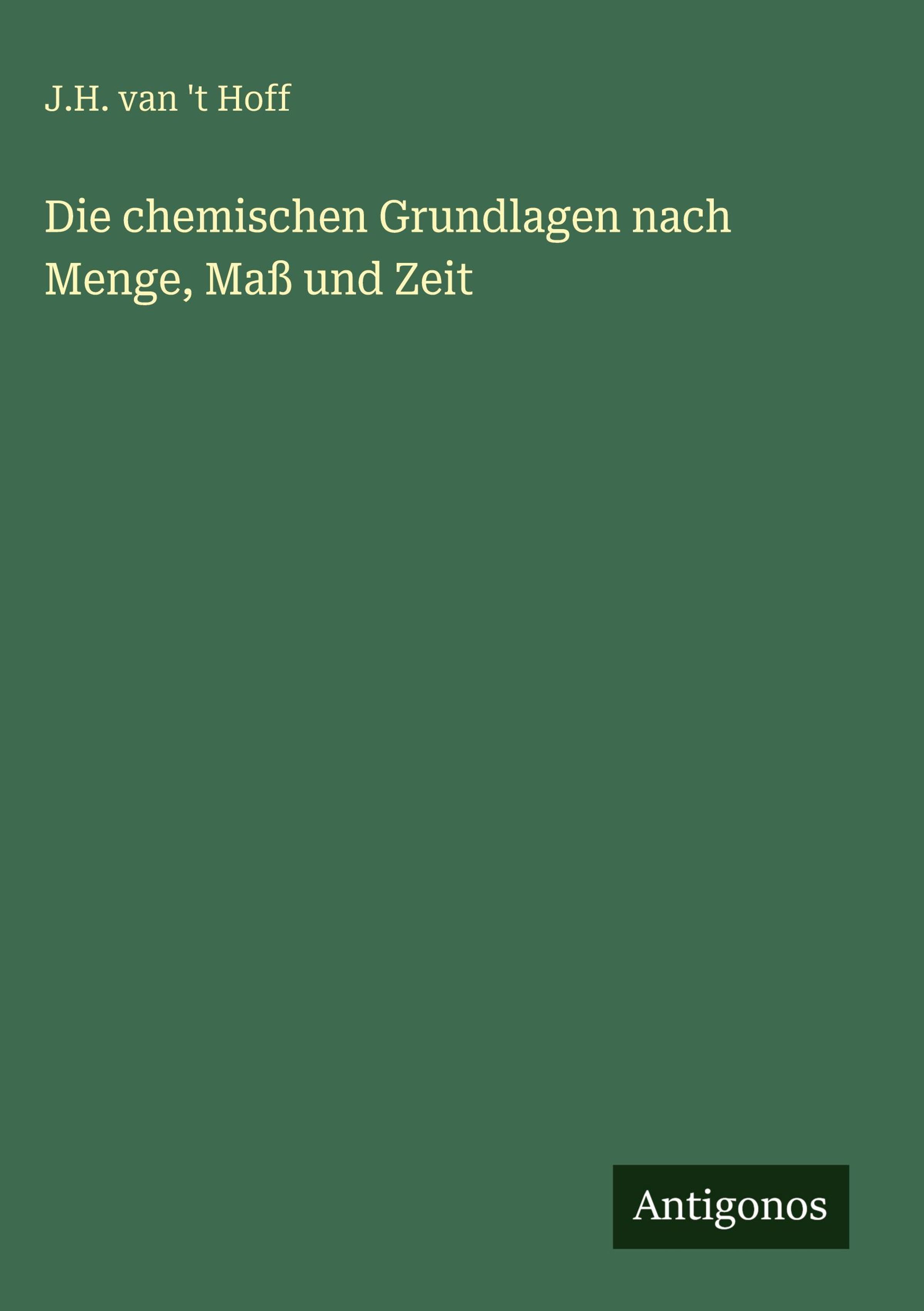 J. H. van 't Hoff: Die chemischen Grundlagen nach Menge, Maß und Zeit, Gebunden