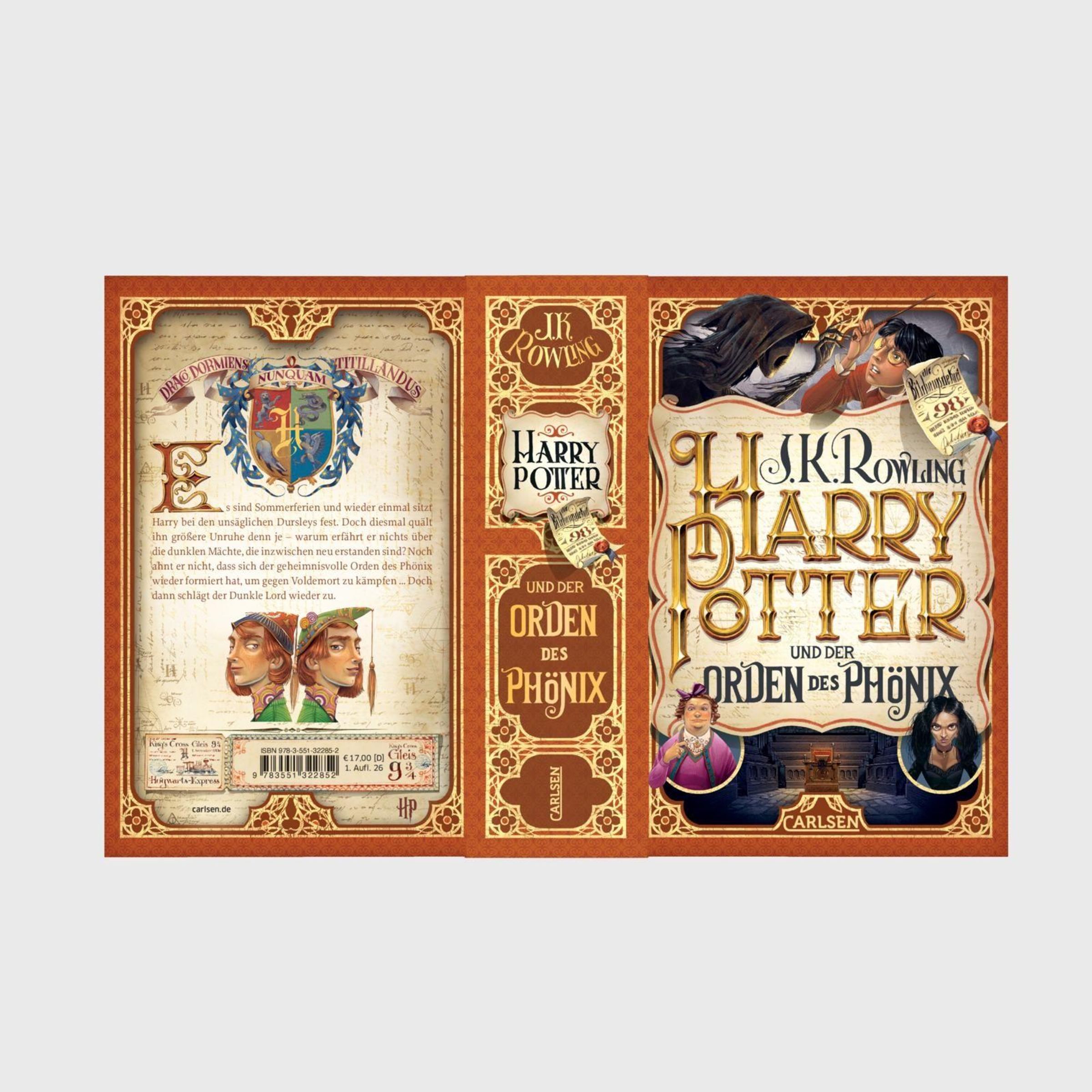 Endlich auch als Taschenbuch: die detailreiche Gestaltung aller Bände anlässlich des 20-jährigen Jubiläums Es sind Sommerferien und wieder einmal sitzt Harry bei den unsäglichen Dursleys fest. Doch diesmal treibt ihn größere Unruhe denn je - warum erfährt er nichts über die dunklen Mächte, die inzwischen neu erstanden sind? Noch ahnt er nicht, was der geheimnisvolle Orden des Phönix gegen Voldemort ausrichten kann. Doch dann schlägt der Dunkle Lord wieder zu. Harry muss seine Freunde um sich scharen, sonst gibt es kein Entrinnen.Ein generationenübergreifender Fantasy-Klassiker Millionen von Leser*innen und mehrere Generationen sind mit den Geschichten von Harry Potter aufgewachsen. Die Autorin hat mit Hogwarts ein Universum geschaffen, das einzigartig ist und eine immense kulturelle Bedeutung erlangt hat. Neben der magischen Welt und spannenden Abenteuern spielen auch moralische Werte wie Freundschaft, Toleranz, Loyalität und der Einsatz für das Gute eine wichtige Rolle.Diese vom italienischen Illustrator Iacopo Bruno neu gestaltete Ausgabe des fünften Bandes der Harry-Potter-Serie wird Leser*innen jeden Alters verzaubern.
