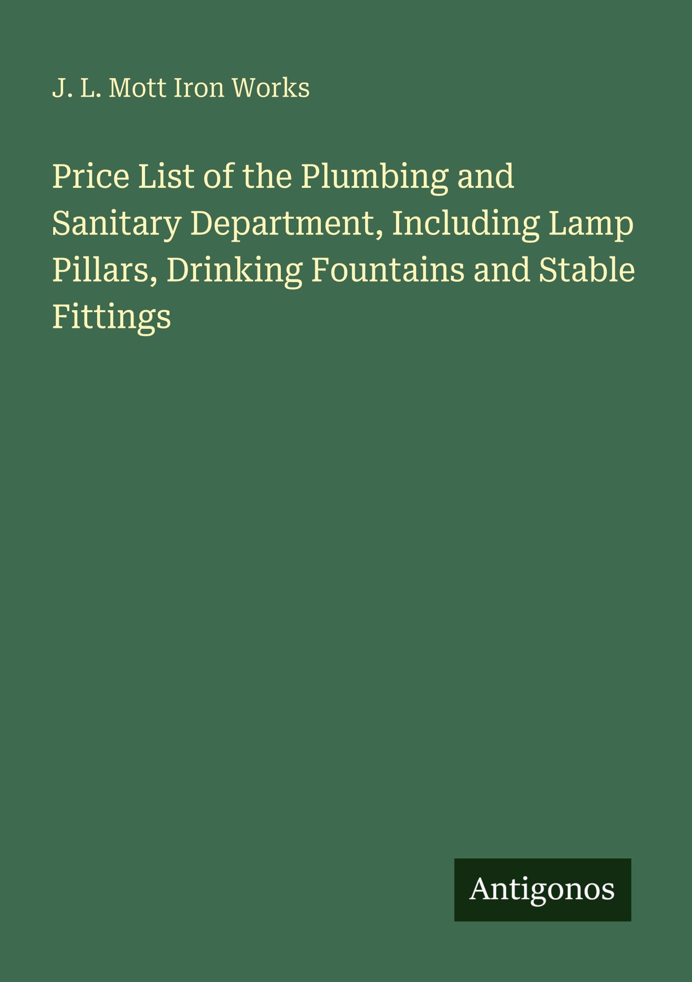 J. L. Mott Iron Works: Price List of the Plumbing and Sanitary Department, Including Lamp Pillars, Drinking..., Kartoniert / Broschiert