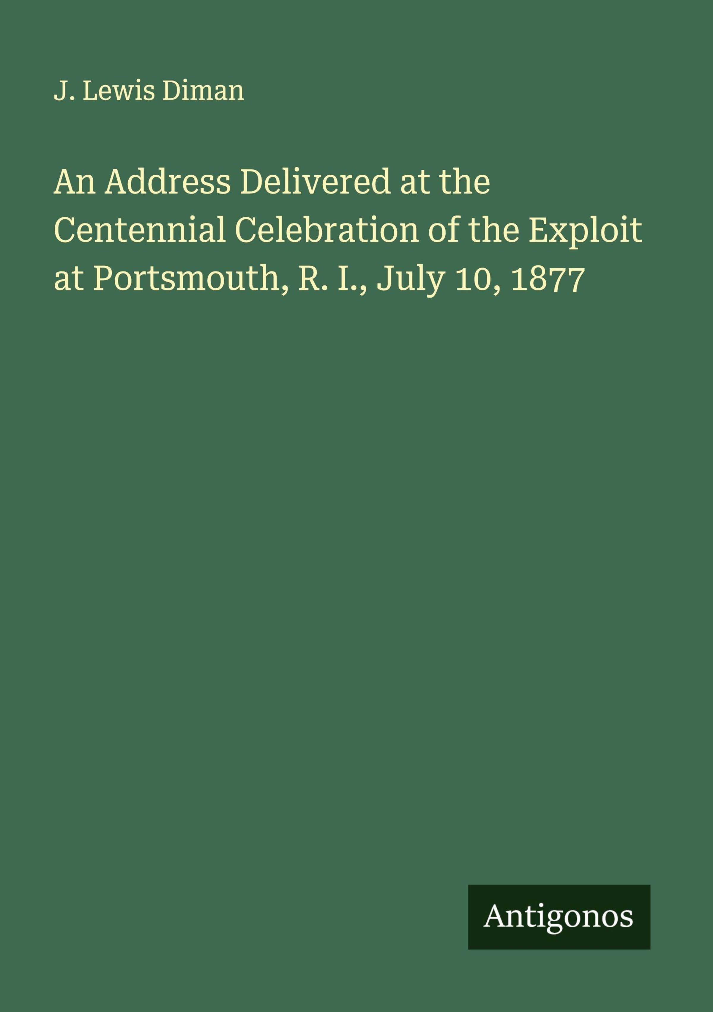 J. Lewis Diman: An Address Delivered at the Centennial Celebration of the Exploit at Portsmouth, R. I., July 10,..., Kartoniert / Broschiert