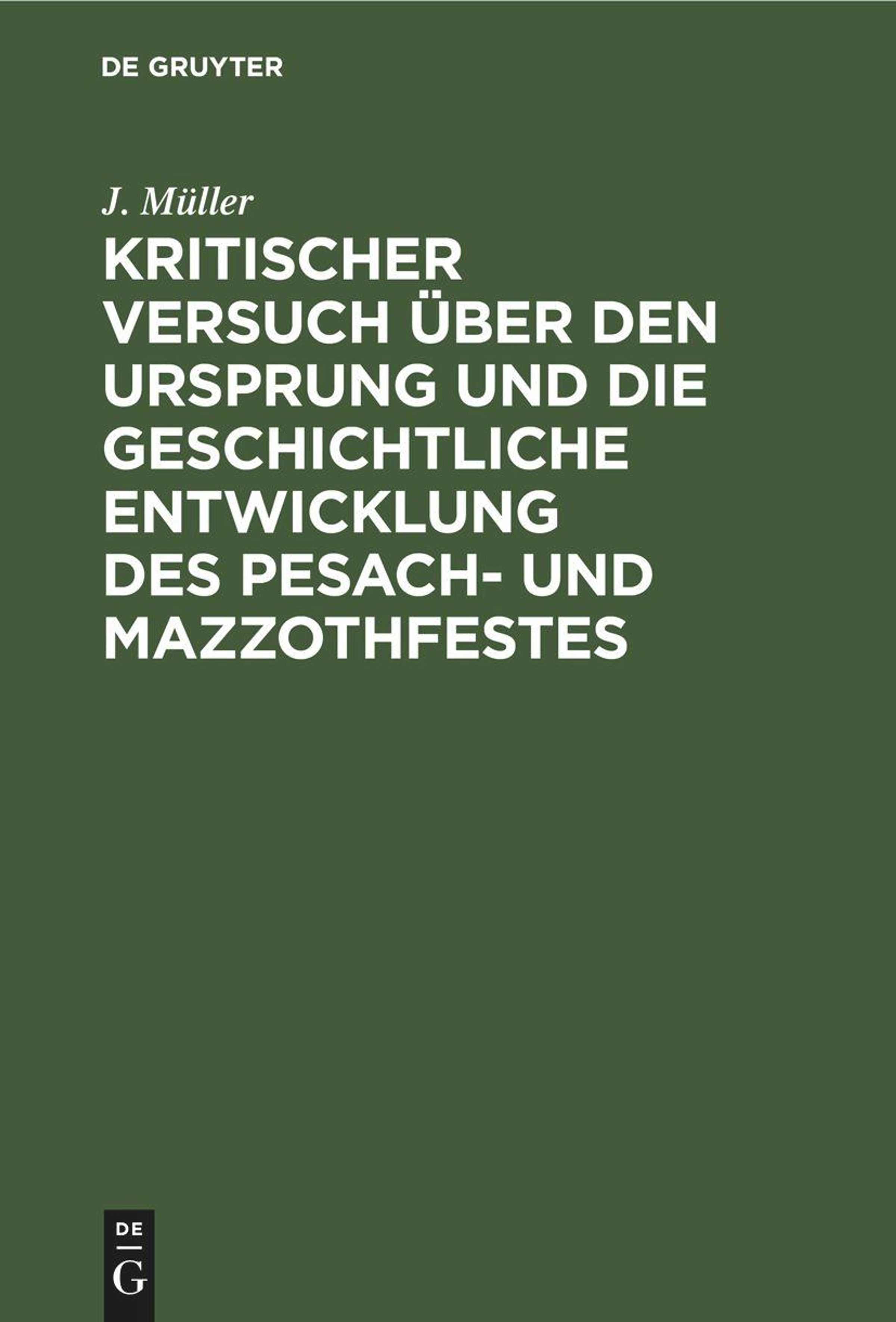 J. Müller: Kritischer Versuch über den Ursprung und die geschichtliche Entwicklung des Pesach- und Mazzothfestes, Gebunden