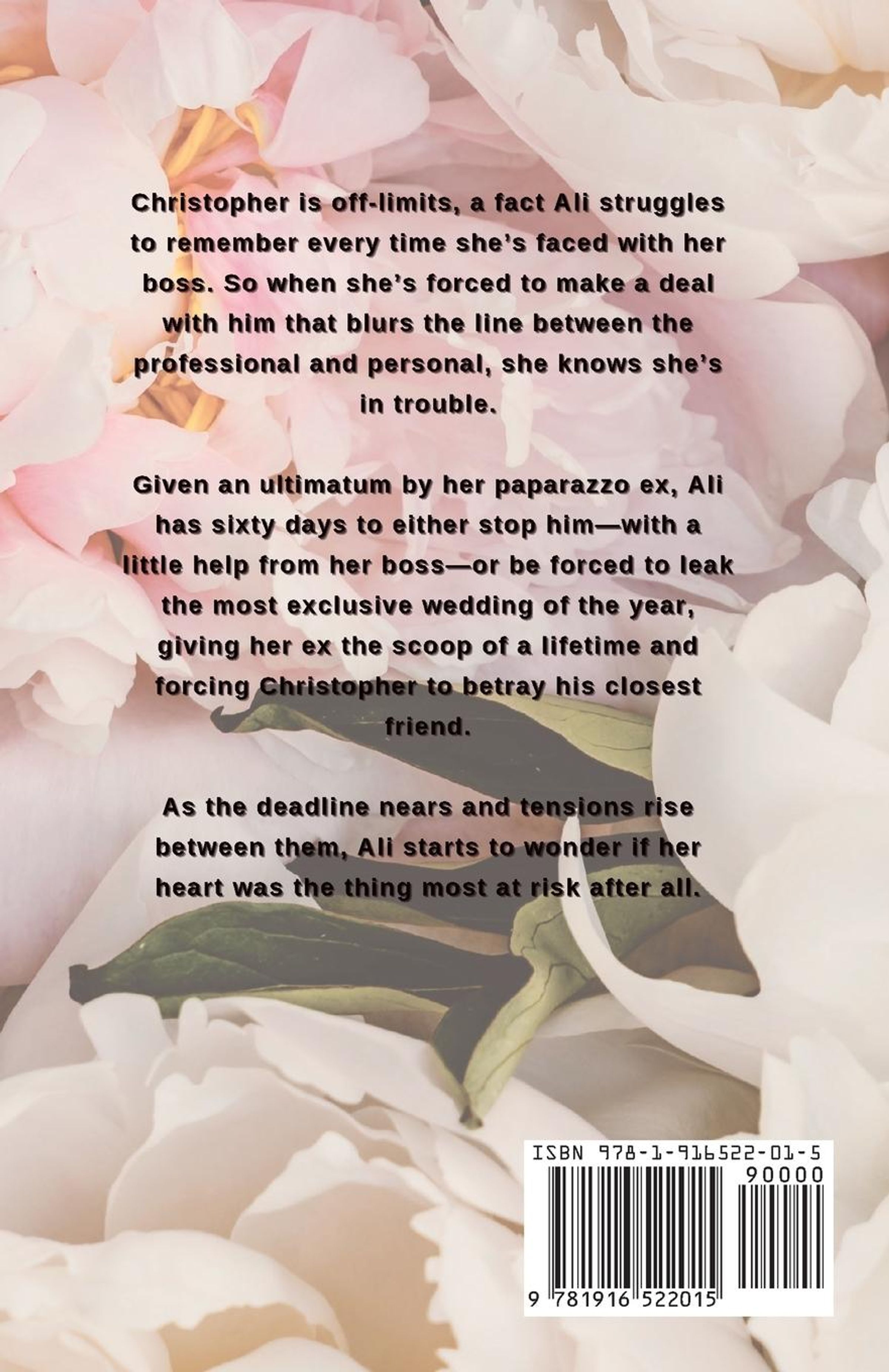 Given an ultimatum by her paparazzo ex, Ali has sixty days to either stop him-with a little help from her boss-or be forced to leak the most exclusive wedding of the year, giving her ex the scoop of a lifetime and forcing Christopher to betray his closest friend.