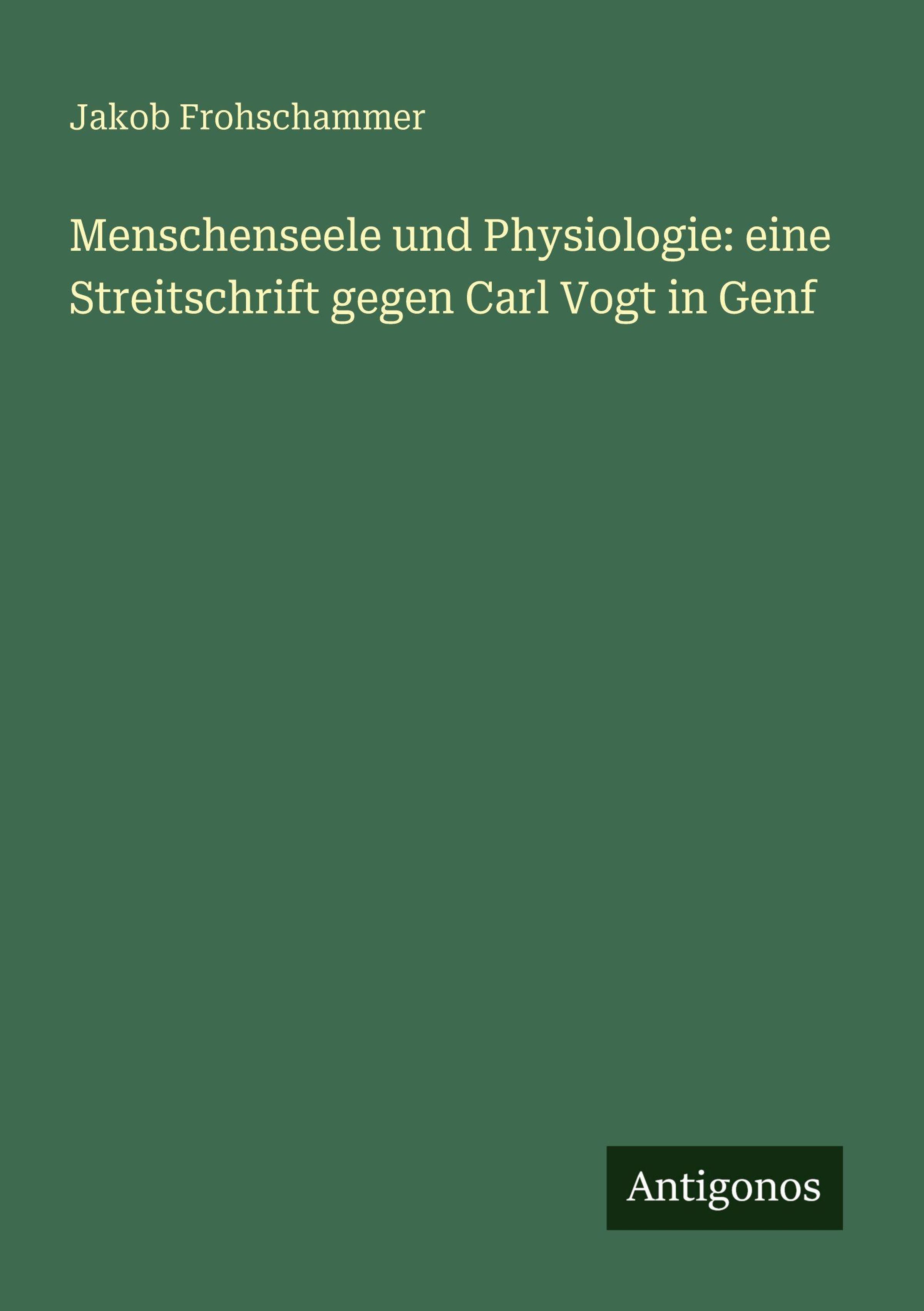 Jakob Frohschammer: Menschenseele und Physiologie: eine Streitschrift gegen Carl Vogt in Genf, Kartoniert / Broschiert