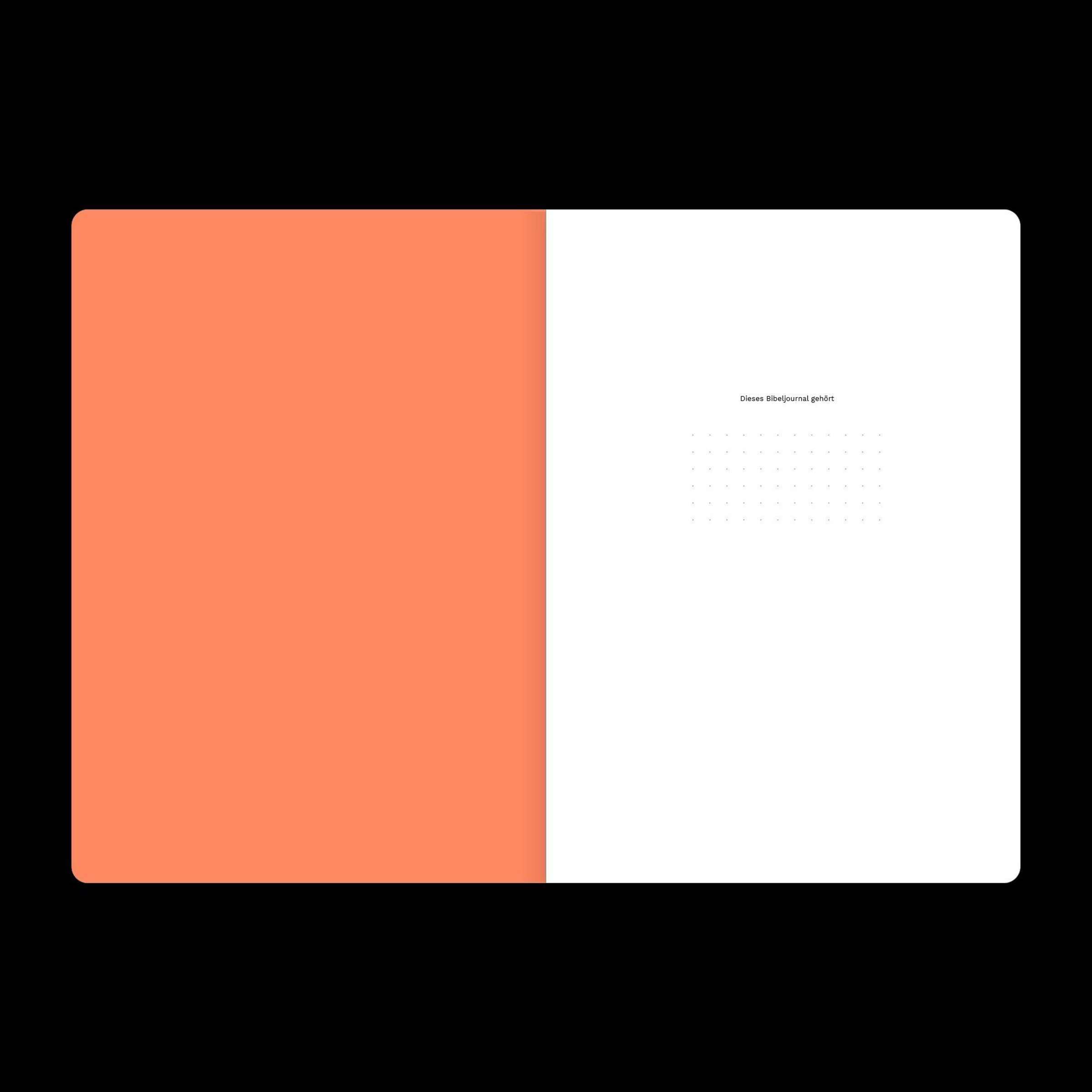 Text: "Jakobus" und "Bibeljournal". Ein roter, minimalistischer Bucheinband mit gelber Schrift., Buch