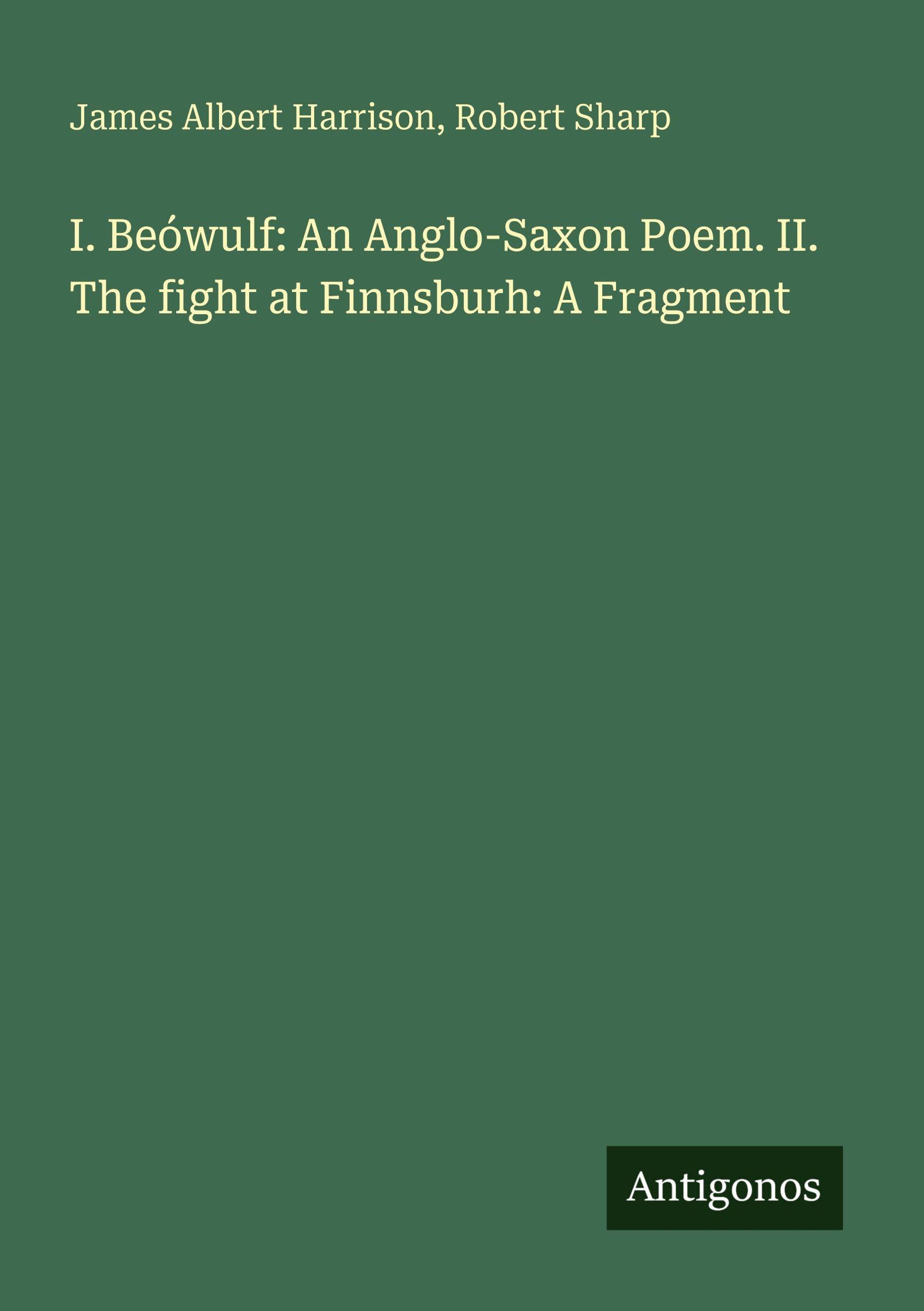 I. Beówulf: An Anglo-Saxon Poem. II. The fight at Finnsburh: A Fragment