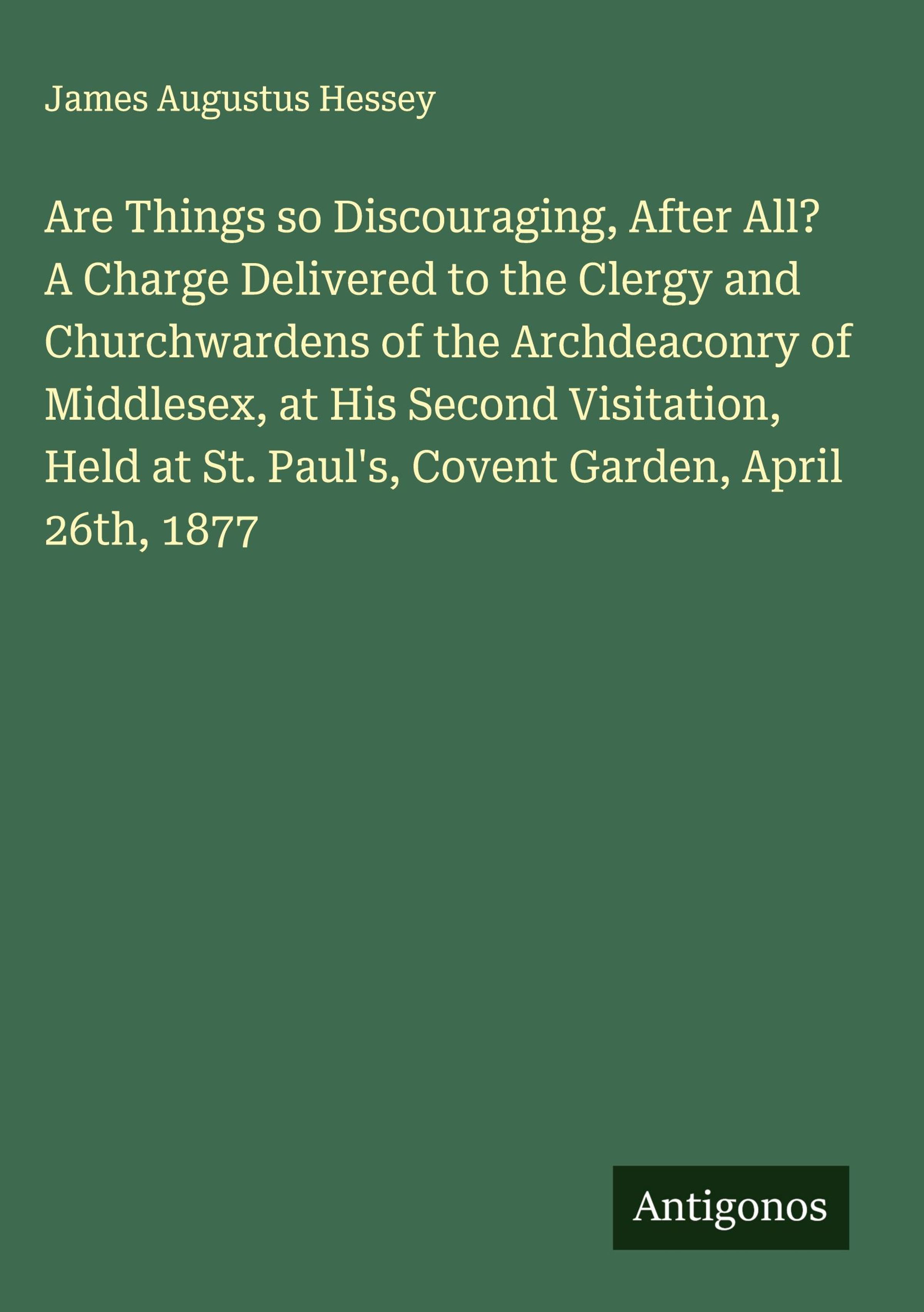 Are Things so Discouraging, After All? A Charge Delivered to the Clergy and Churchwardens of the Archdeaconry of Middlesex, at His Second Visitation, Held at St. Paul's, Covent Garden, April 26th, 1877