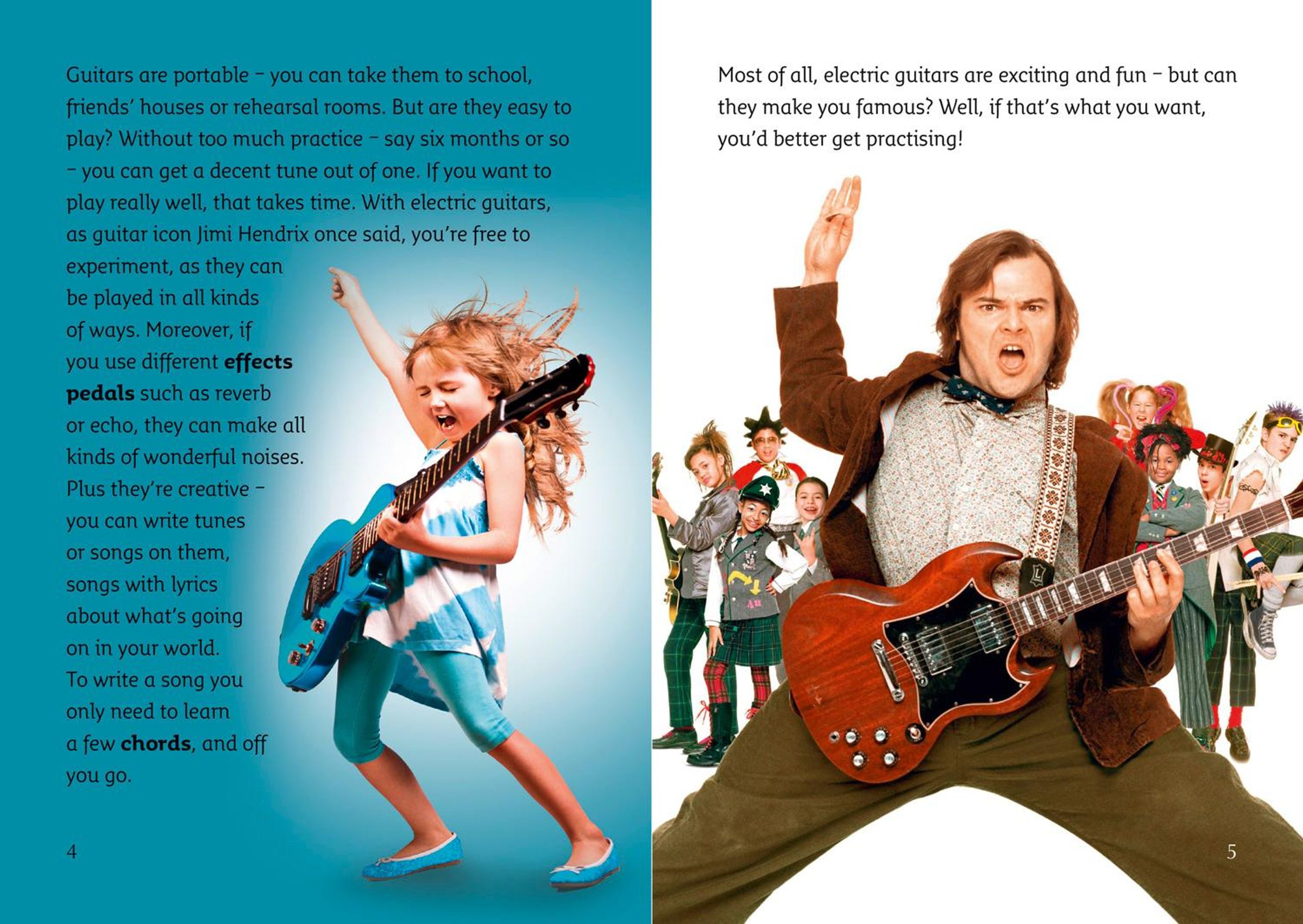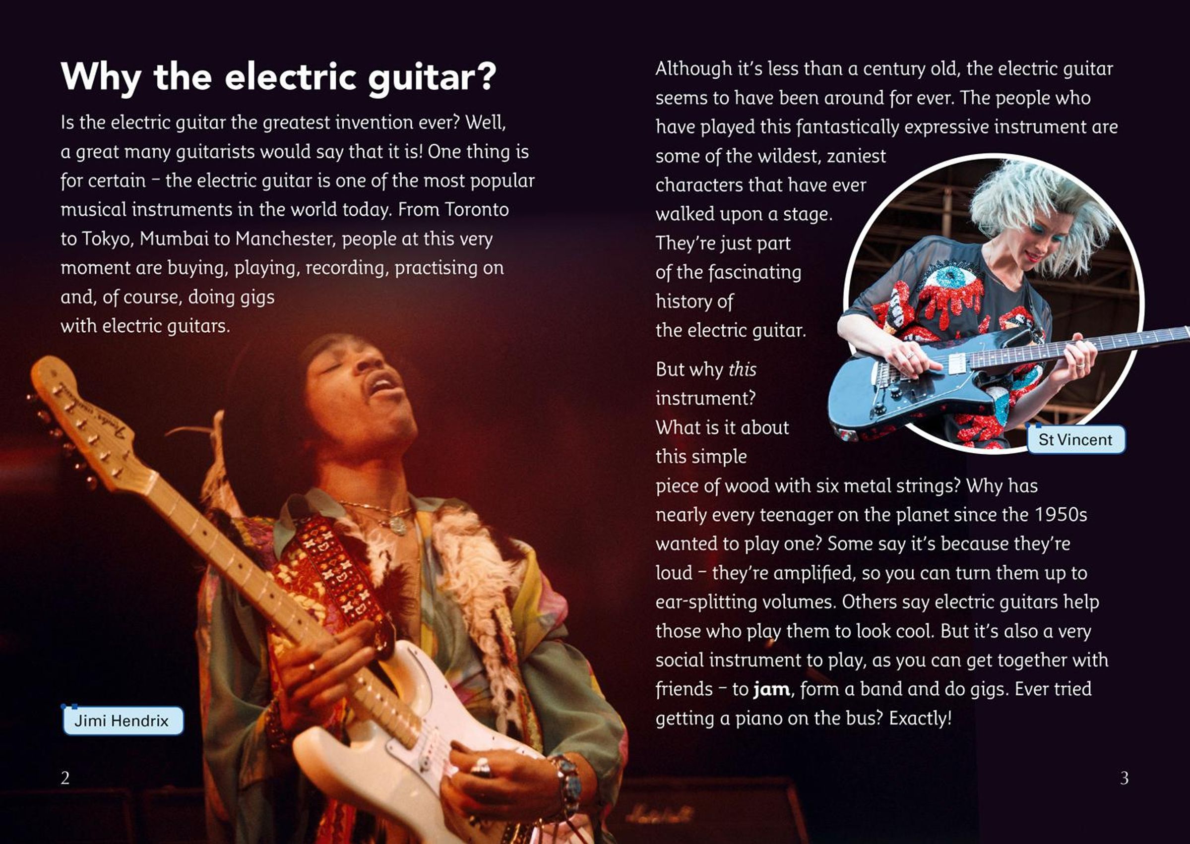 Electric guitars have made a massive contribution to music over the last century. It's hard to imagine today's music without them! But how were they invented, who were (and are) the greatest guitarists and what makes this amazing instrument so versatile and exciting? Read this book to find out!