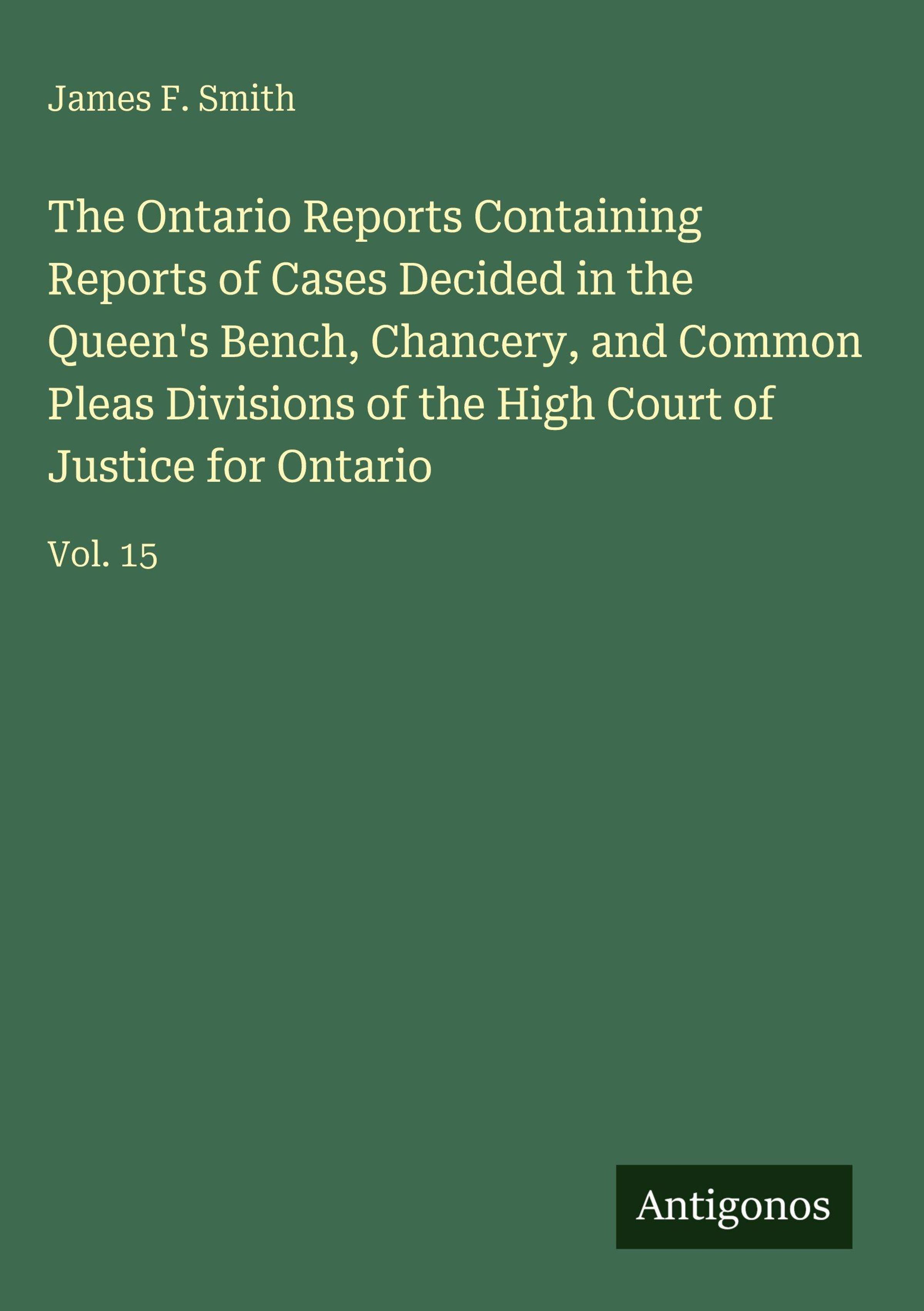 James F. Smith: The Ontario Reports Containing Reports of Cases Decided in the Queen's Bench, Chancery, and..., Gebunden