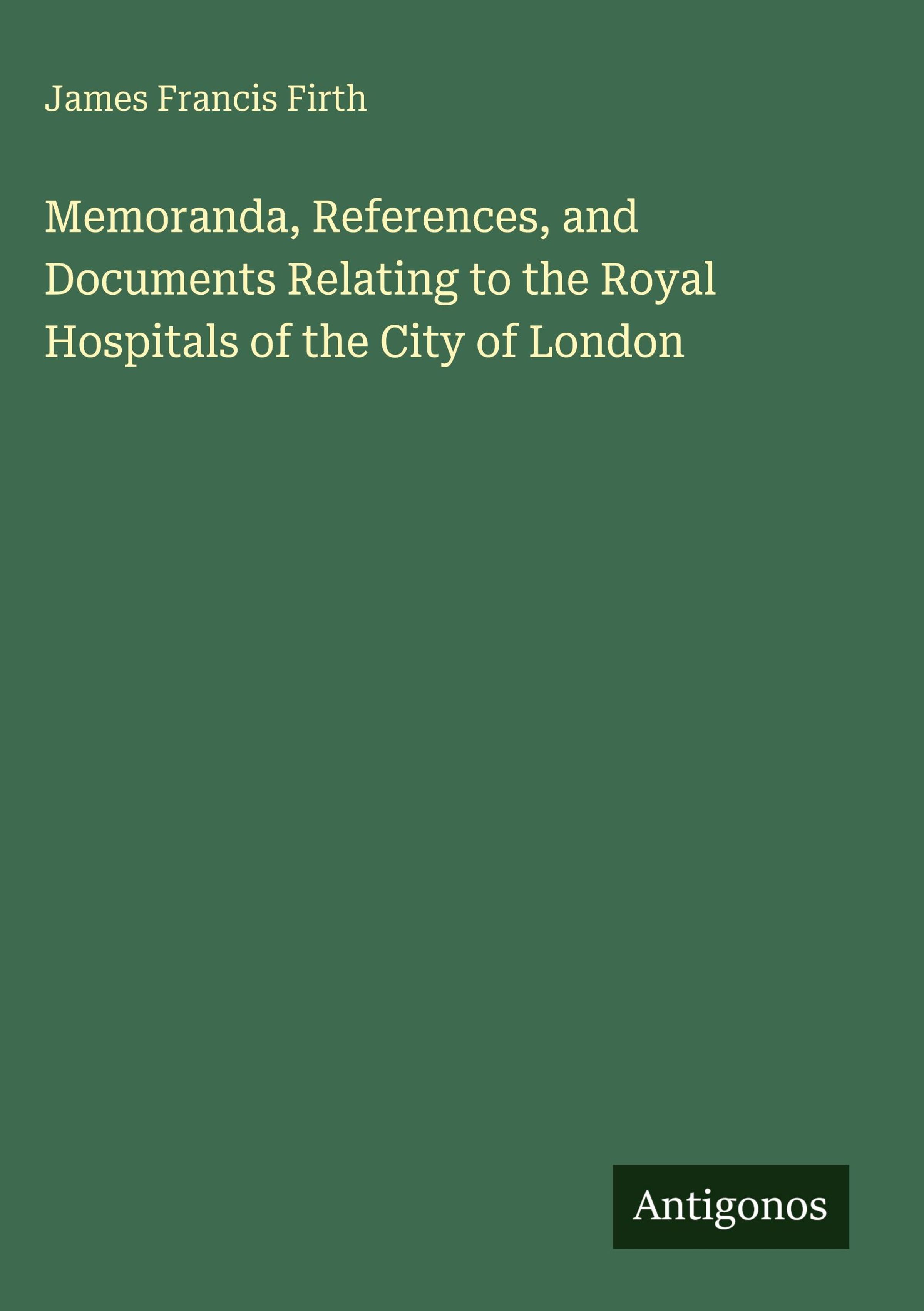 James Francis Firth: Memoranda, References, and Documents Relating to the Royal Hospitals of the City of London, Gebunden