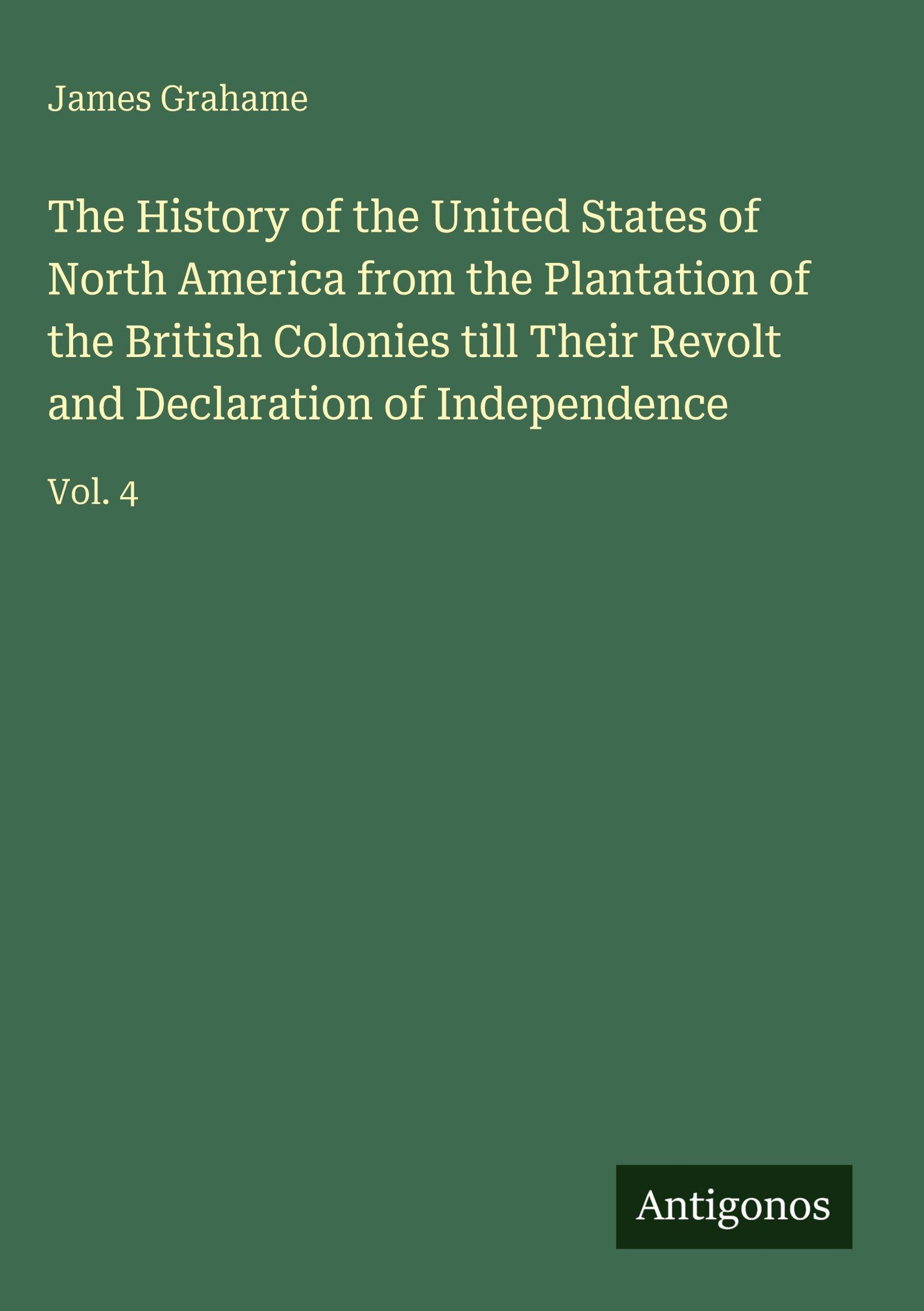 The History of the United States of North America from the Plantation of the British Colonies till Their Revolt and Declaration of Independence