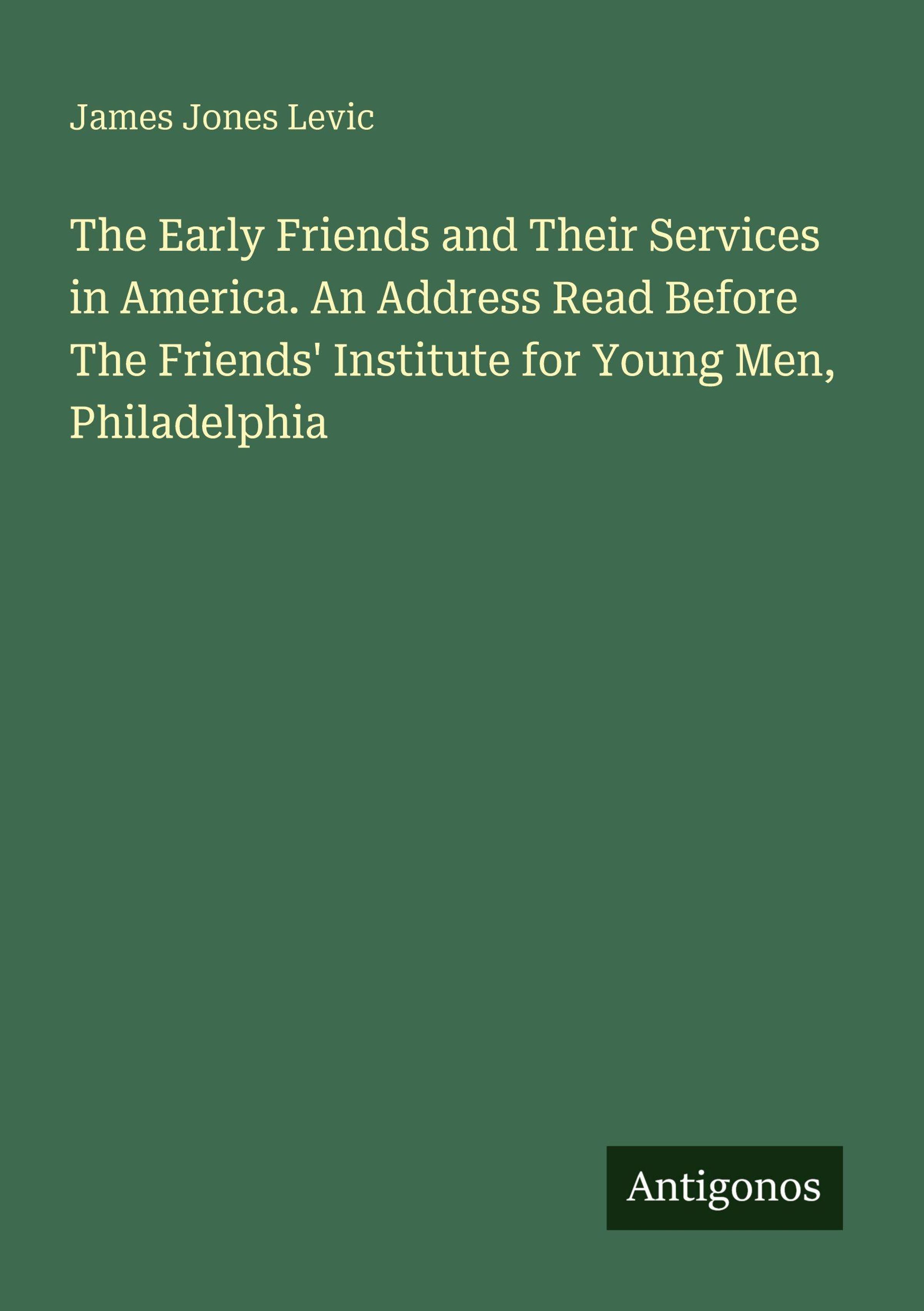 The Early Friends and Their Services in America. An Address Read Before The Friends' Institute for Young Men, Philadelphia