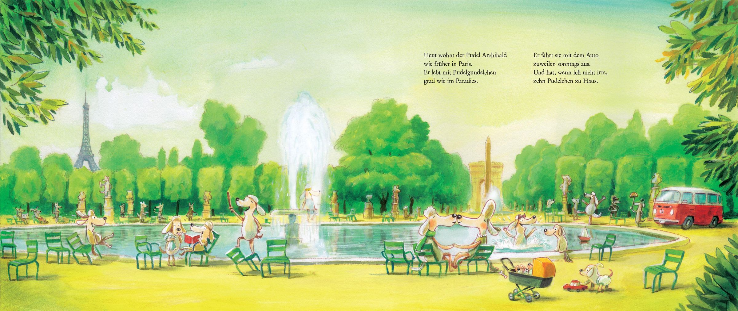 Archibald, der charmante Pudel aus Paris, macht sich eines Donnerstags auf den Weg - in seinem alten Opel, quer durch Europa. Seine Route führt von Paris über Bern und Madrid, vorbei am Petersdom in Rom und der Akropolis in Athen, weiter nach Polen, Ungarn und Österreich. Er kostet Buletten in Berlin, bestaunt die Meerjungfrau in Kopenhagen, verliebt sich in Amsterdam und kehrt schließlich - mit einer Pudeldame an seiner Seite - über London zurück nach Paris, wo er heute mit Frau und zehn Pudelkindern glücklich lebt.