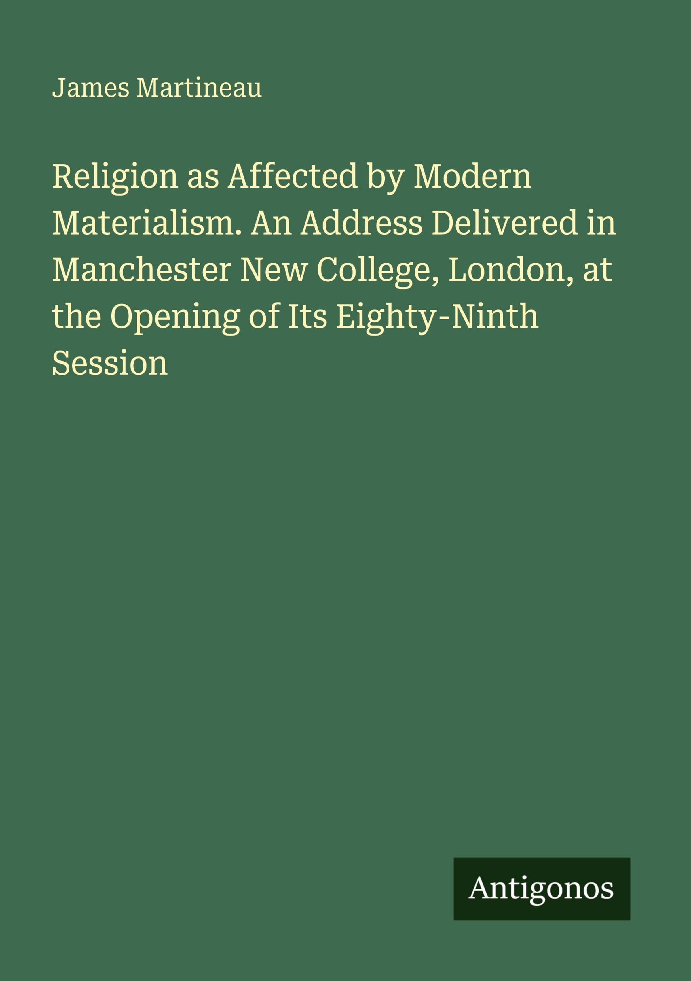 James Martineau: Religion as Affected by Modern Materialism. An Address Delivered in Manchester New College,..., Kartoniert / Broschiert