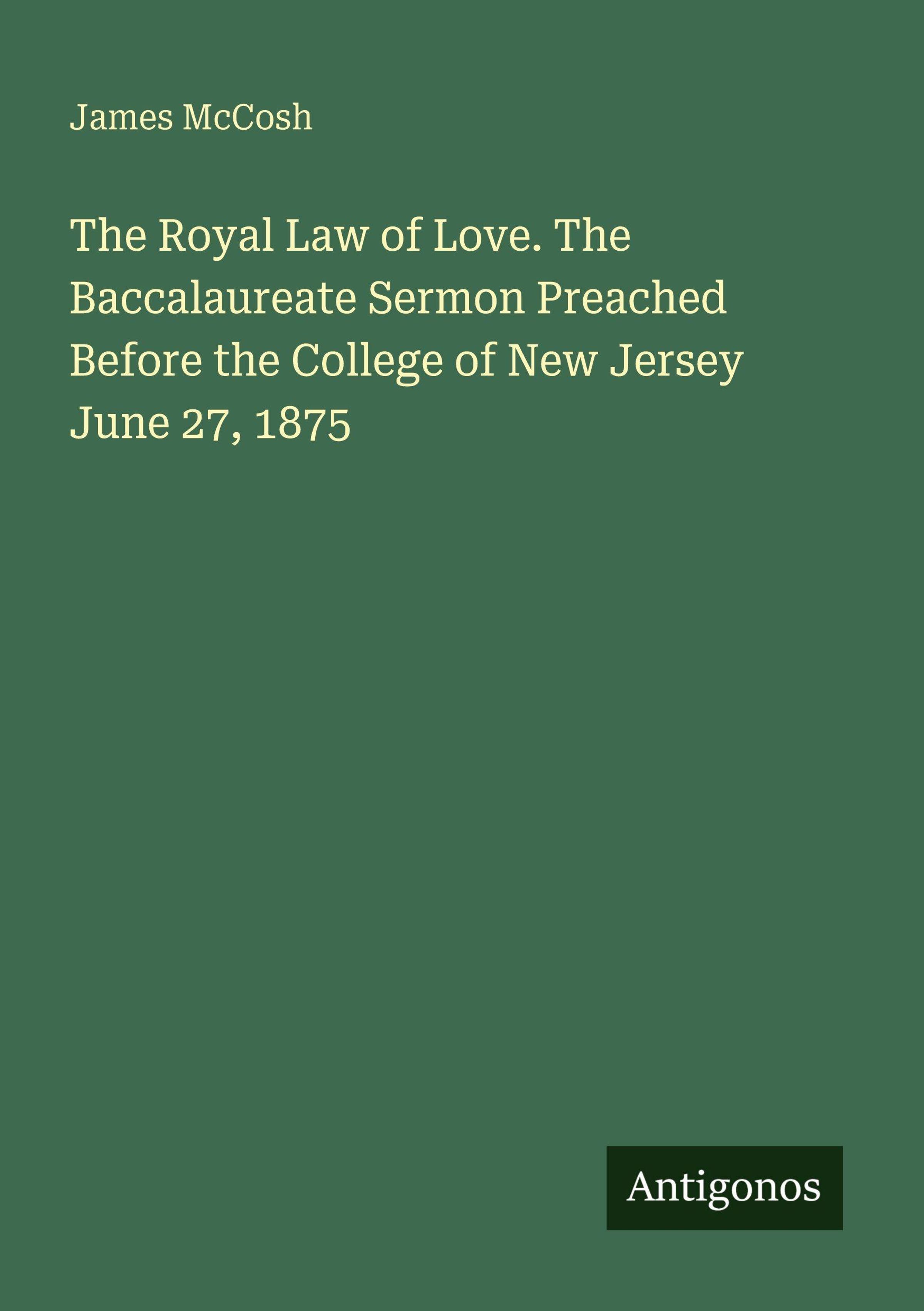 The Royal Law of Love. The Baccalaureate Sermon Preached Before the College of New Jersey June 27, 1875