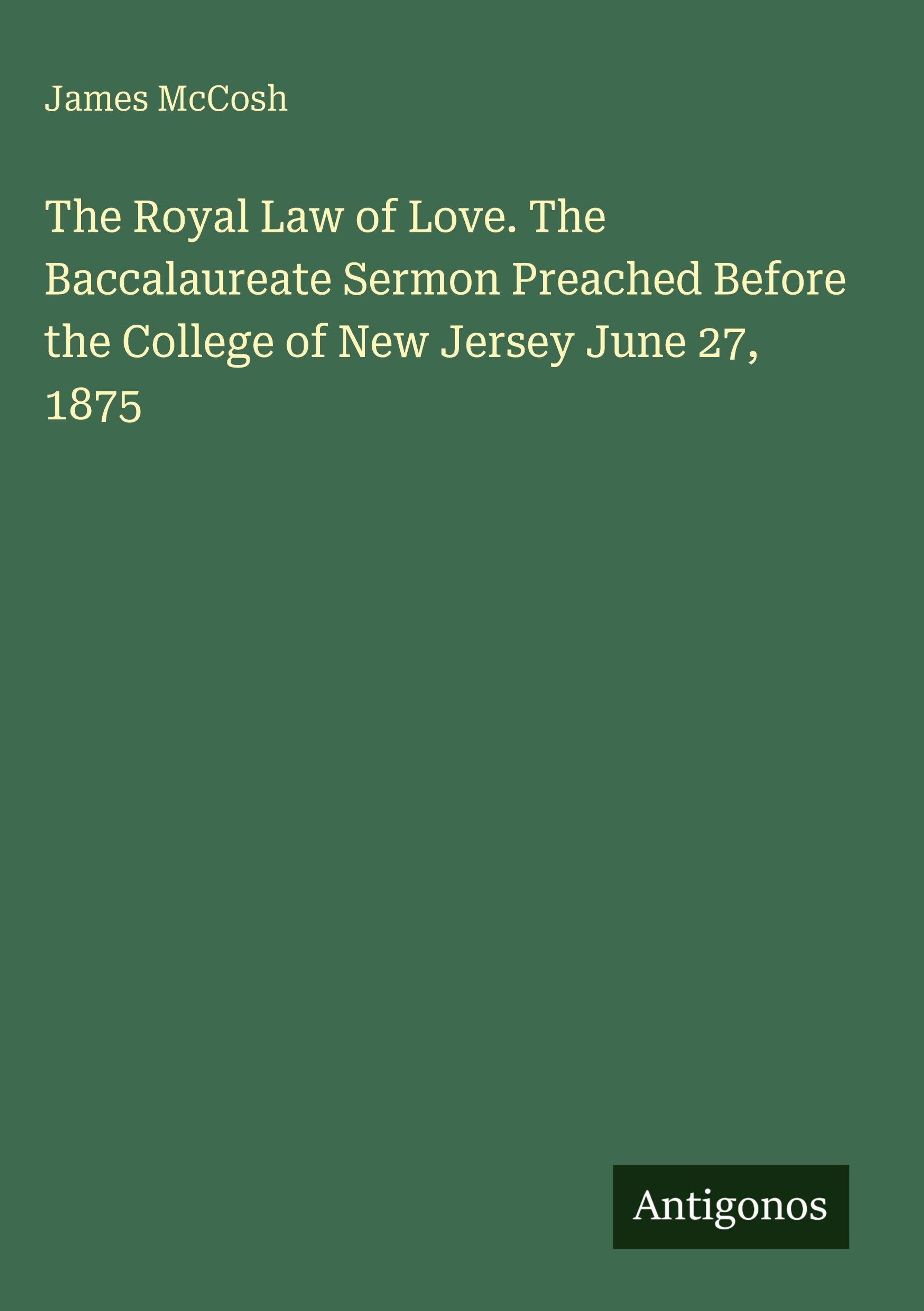 The Royal Law of Love. The Baccalaureate Sermon Preached Before the College of New Jersey June 27, 1875