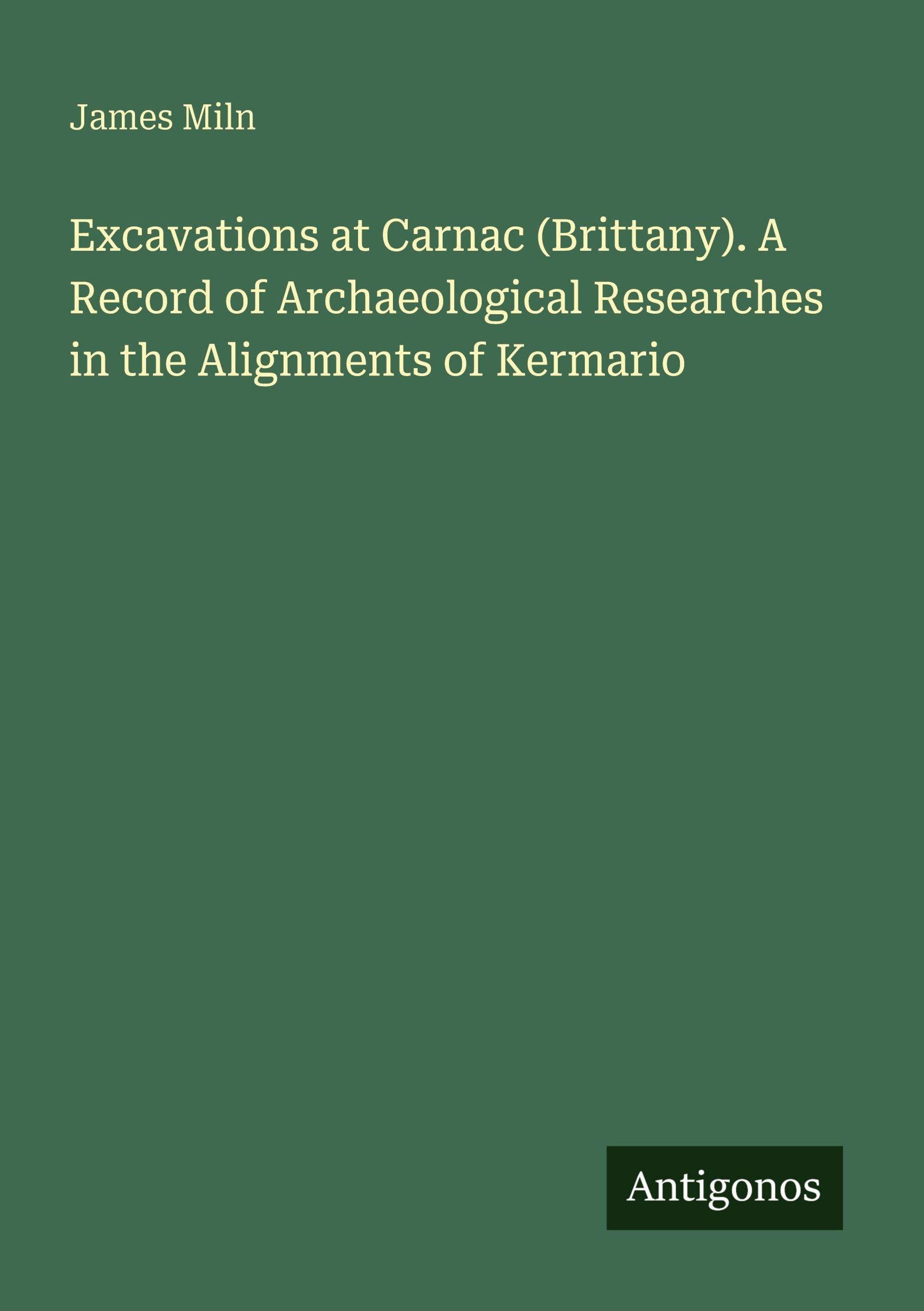 James Miln: Excavations at Carnac (Brittany). A Record of Archaeological Researches in the Alignments of Kermario, Kartoniert / Broschiert