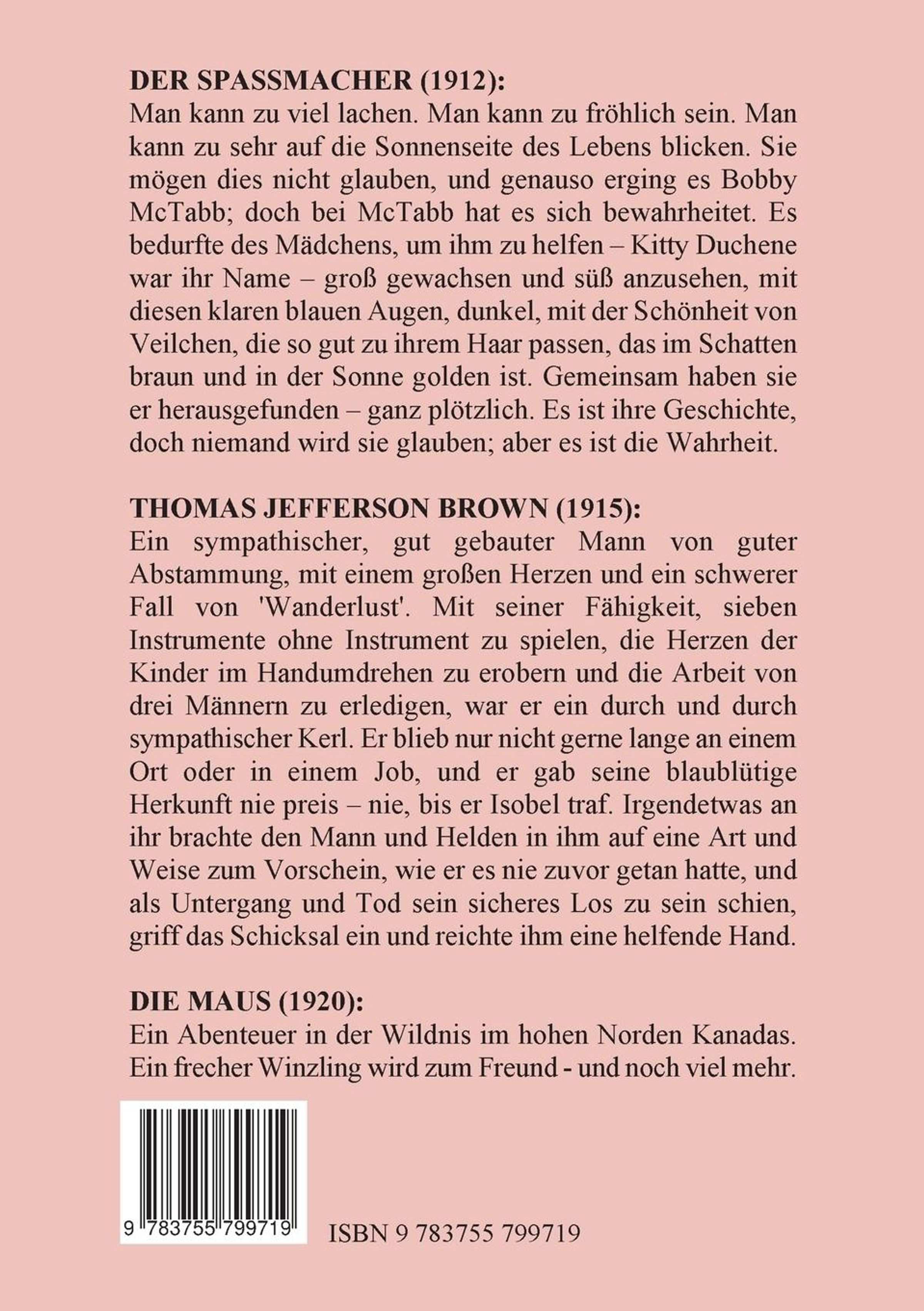 Man kann zu viel lachen. Man kann zu fröhlich sein. Man kann zu sehr auf die Sonnenseite des Lebens blicken. Sie mögen dies nicht glauben, und genauso erging es Bobby McTabb; doch bei McTabb hat es sich bewahrheitet. Es bedurfte des Mädchens, um ihm zu helfen - Kitty Duchene war ihr Name - groß gewachsen und süß anzusehen, mit diesen klaren blauen Augen, dunkel, mit der Schönheit von Veilchen, die so gut zu ihrem Haar passen, das im Schatten braun und in der Sonne golden ist. Gemeinsam haben sie er herausgefunden - ganz plötzlich. Es ist ihre Geschichte, doch niemand wird sie glauben; aber es ist die Wahrheit.