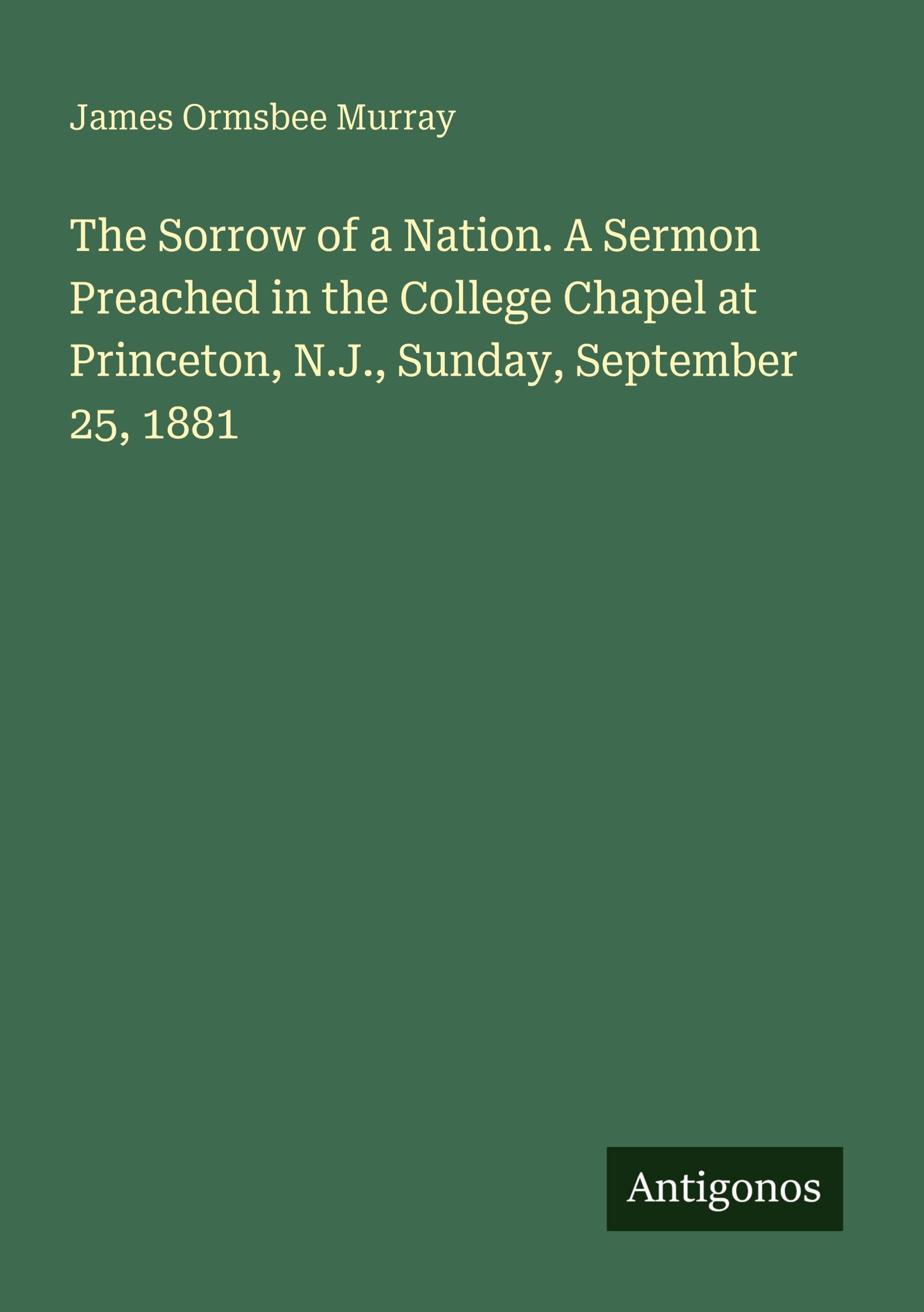 The Sorrow of a Nation. A Sermon Preached in the College Chapel at Princeton, N.J., Sunday, September 25, 1881