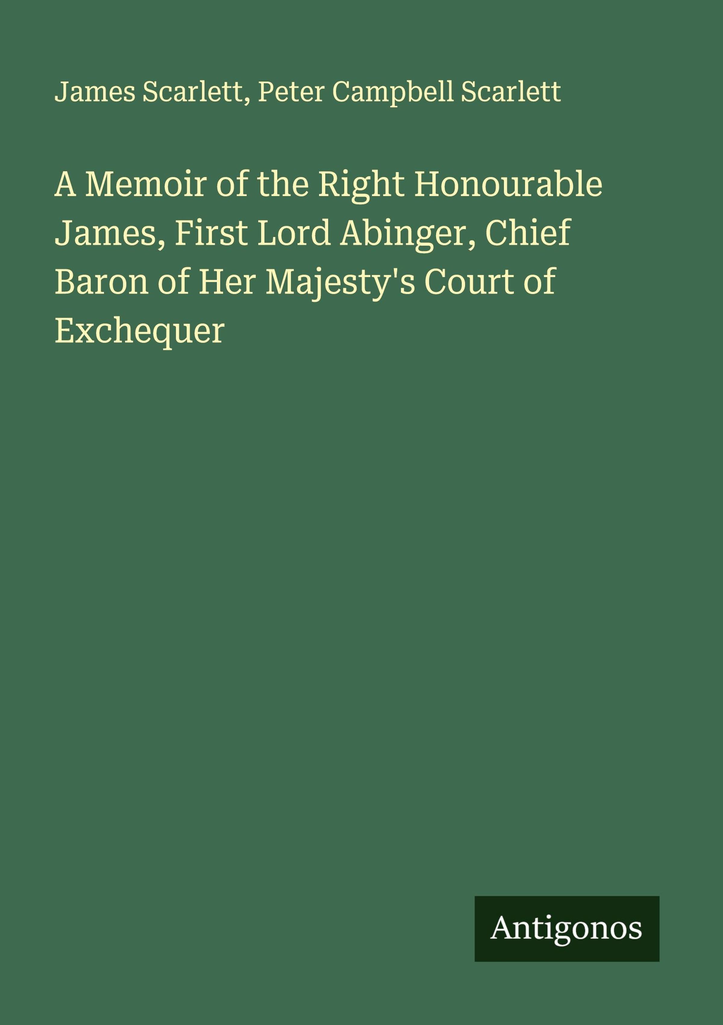 A Memoir of the Right Honourable James, First Lord Abinger, Chief Baron of Her Majesty's Court of Exchequer
