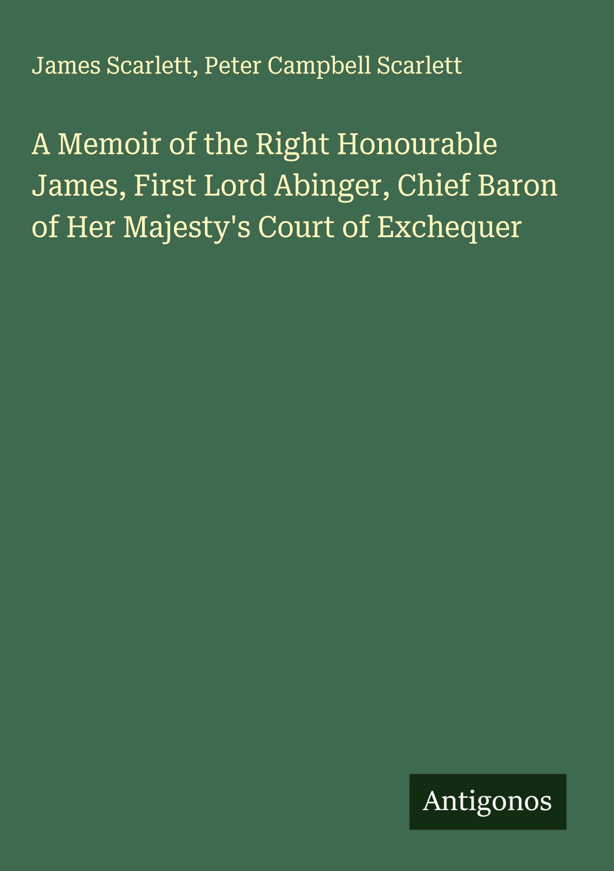 A Memoir of the Right Honourable James, First Lord Abinger, Chief Baron of Her Majesty's Court of Exchequer