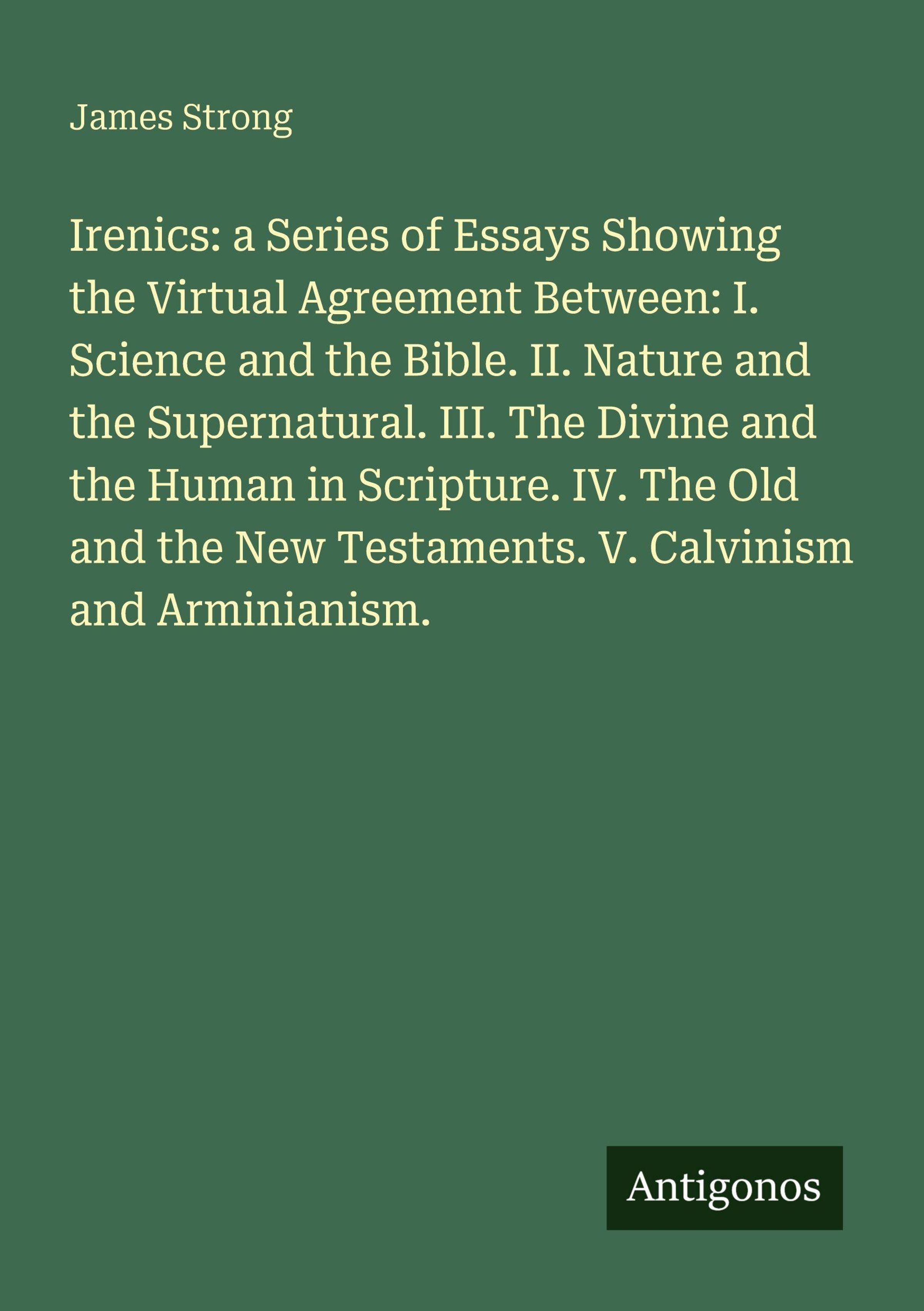 Irenics: a Series of Essays Showing the Upload Agreement Between: I. Science and the Bible. II. Nature and the Supernatural. III. The Divine and the Human in Scripture. IV. The Old and the New Testaments. V. Calvinism and Arminianism.