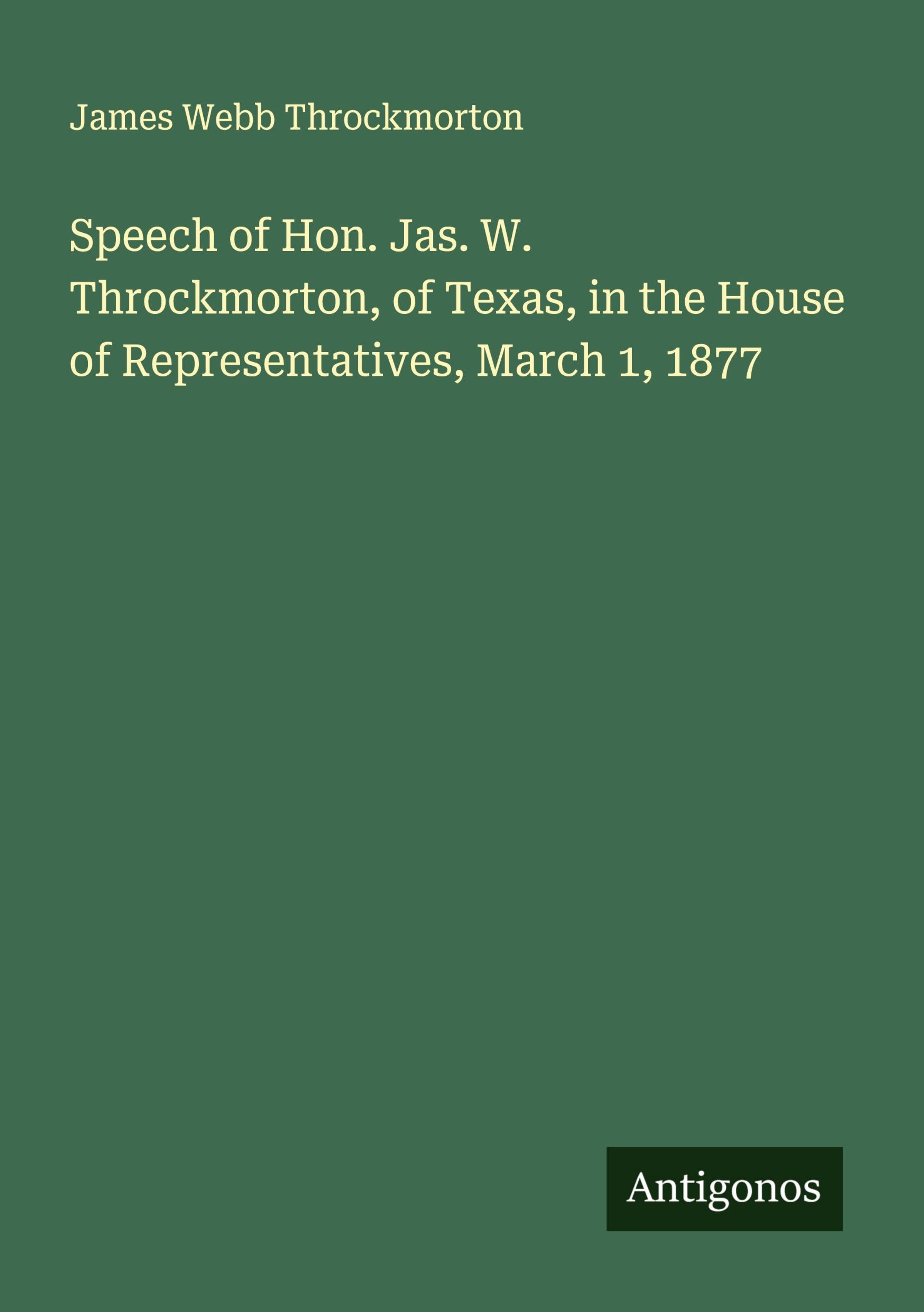 Speech of Hon. Jas. W. Throckmorton, of Texas, in the House of Representatives, March 1, 1877