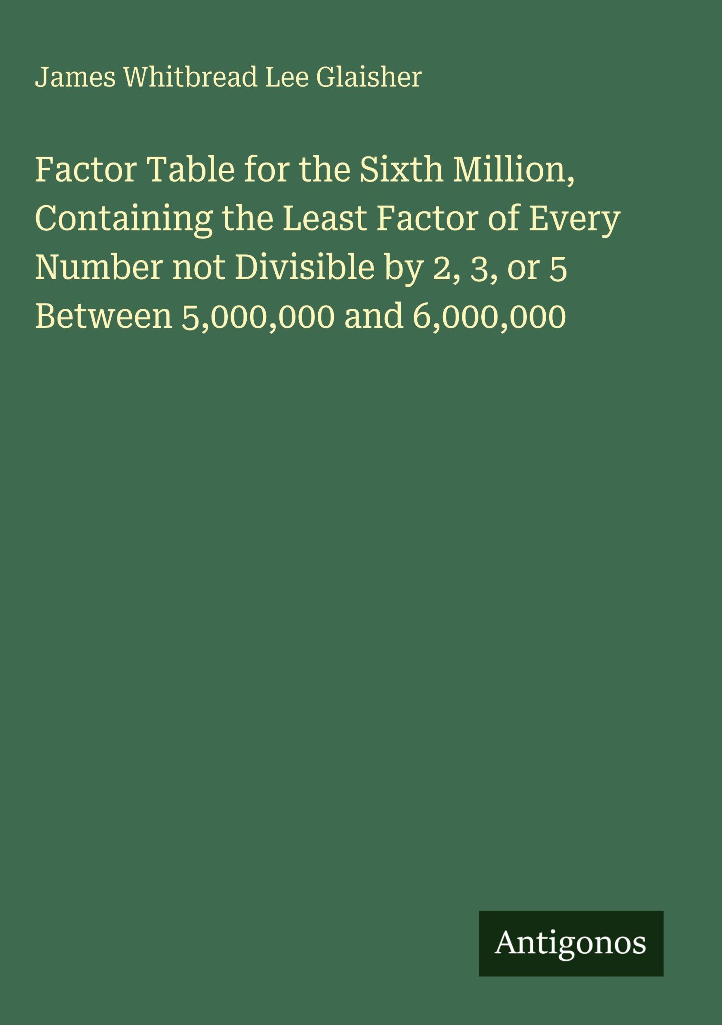 James Whitbread Lee Glaisher: Factor Table for the Sixth Million, Containing the Least Factor of Every Number..., Gebunden