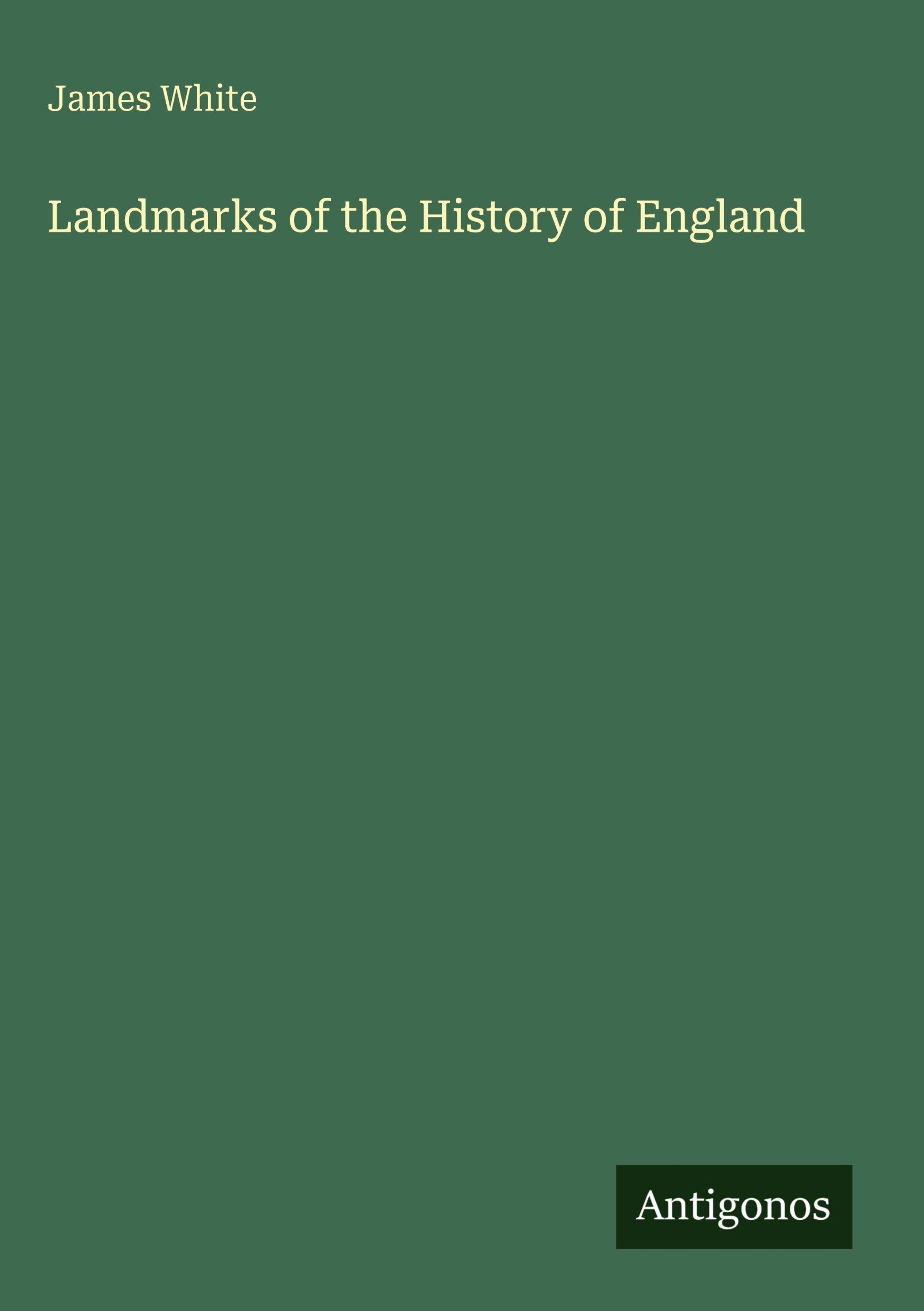 Text: "James White", "Landmarks of the History of England", "Antigonos". Grüner Hintergrund., Buch