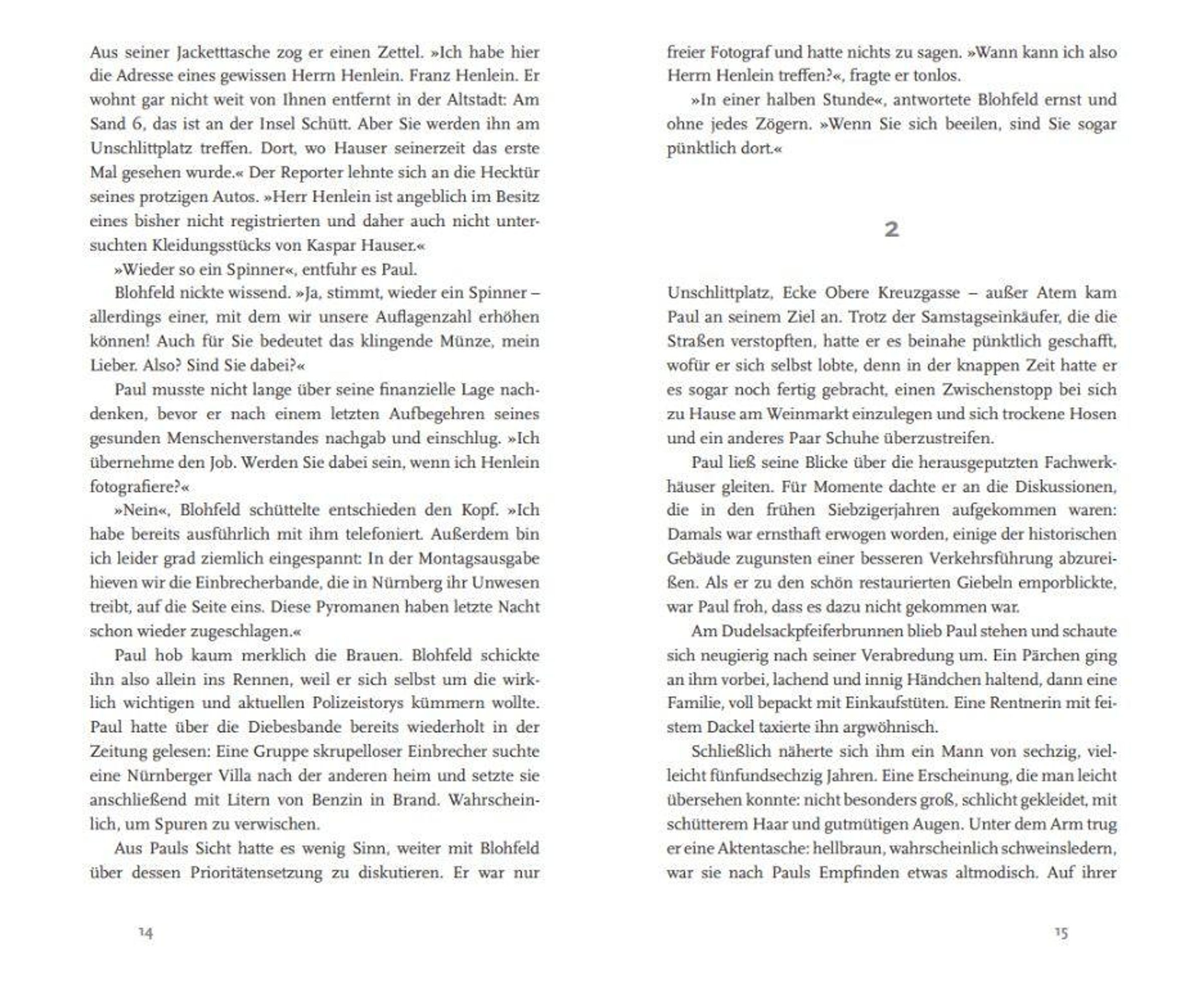 Als der renommierte Kaspar-Hauser-Experte Franz Henlein bei einem Autounfall in Ansbach stirbt, scheint der Fall schnell abgeschlossen. Doch der Fotojournalist Paul Flemming zweifelt an der offiziellen Version. Seine Nachforschungen führen ihn schon bald zu einem zweiten Todesfall: Der Heraldiker Dr. Helmut Sloboda wird tot im Germanischen Nationalmuseum in Nürnberg aufgefunden. Besteht ein Zusammenhang zwischen den beiden mysteriösen Todesfällen?